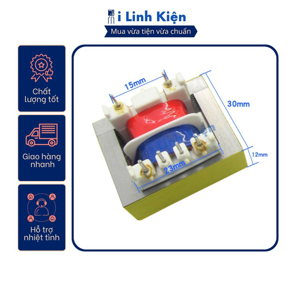 Thông số kỹ thuật biến áp nguồn 12V 150mA : – Điện áp vào : 220V – Điện áp ra : 12V