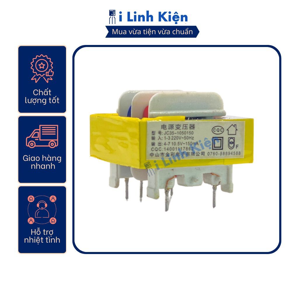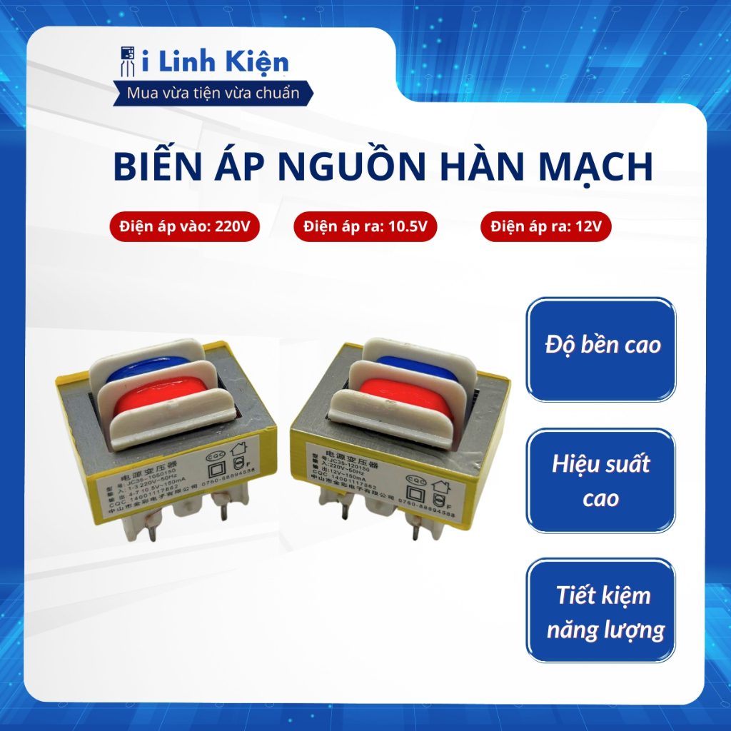 Thông số kỹ thuật biến áp nguồn 10.5V 150mA : – Điện áp vào : 220V – Điện áp ra : 10.5V