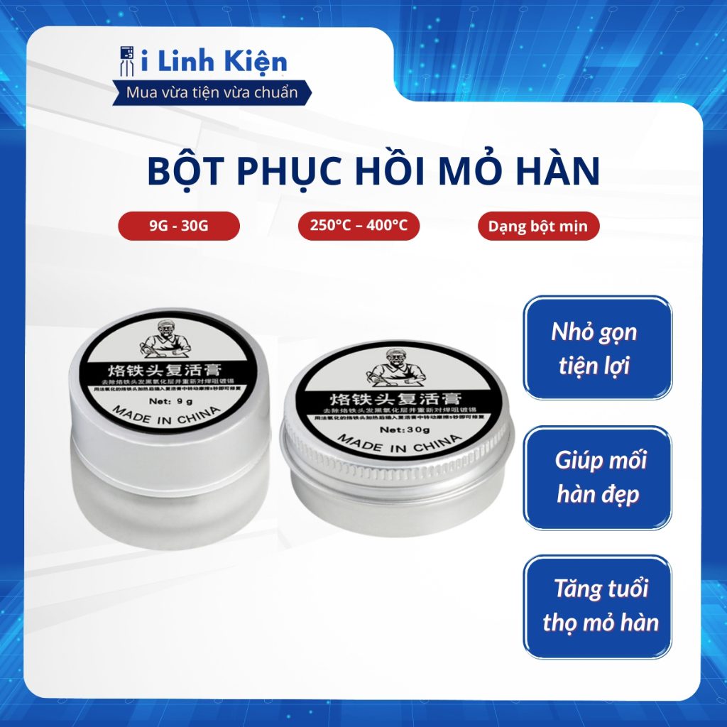 Thông sô kỹ thuật bột phục hồi mỏ hàn : – Trọng lượng : 9g 30g