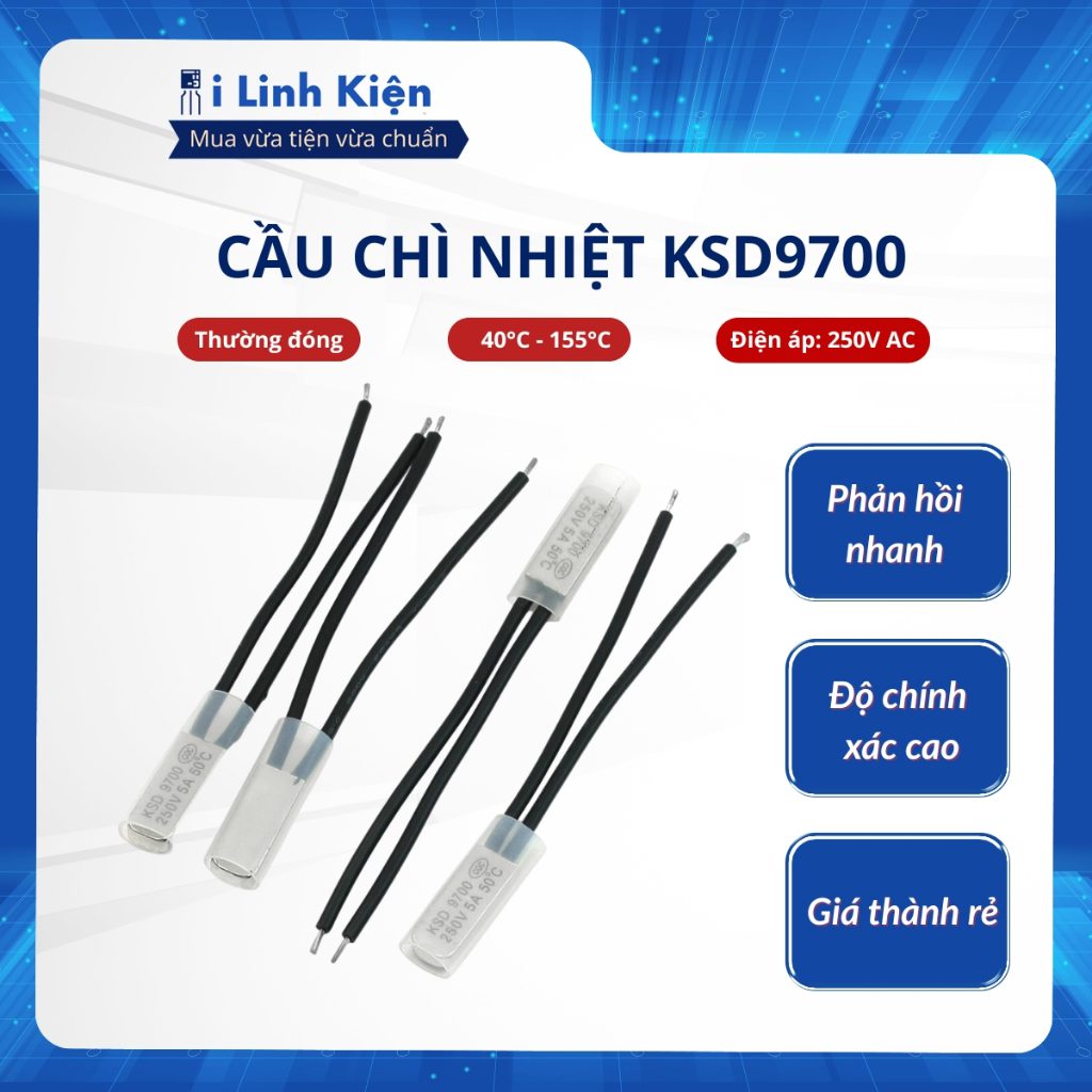 Cầu chì nhiệt KSD9700 40 độ – 155 độ 5A 250V thường đóng chất lượng tốt.