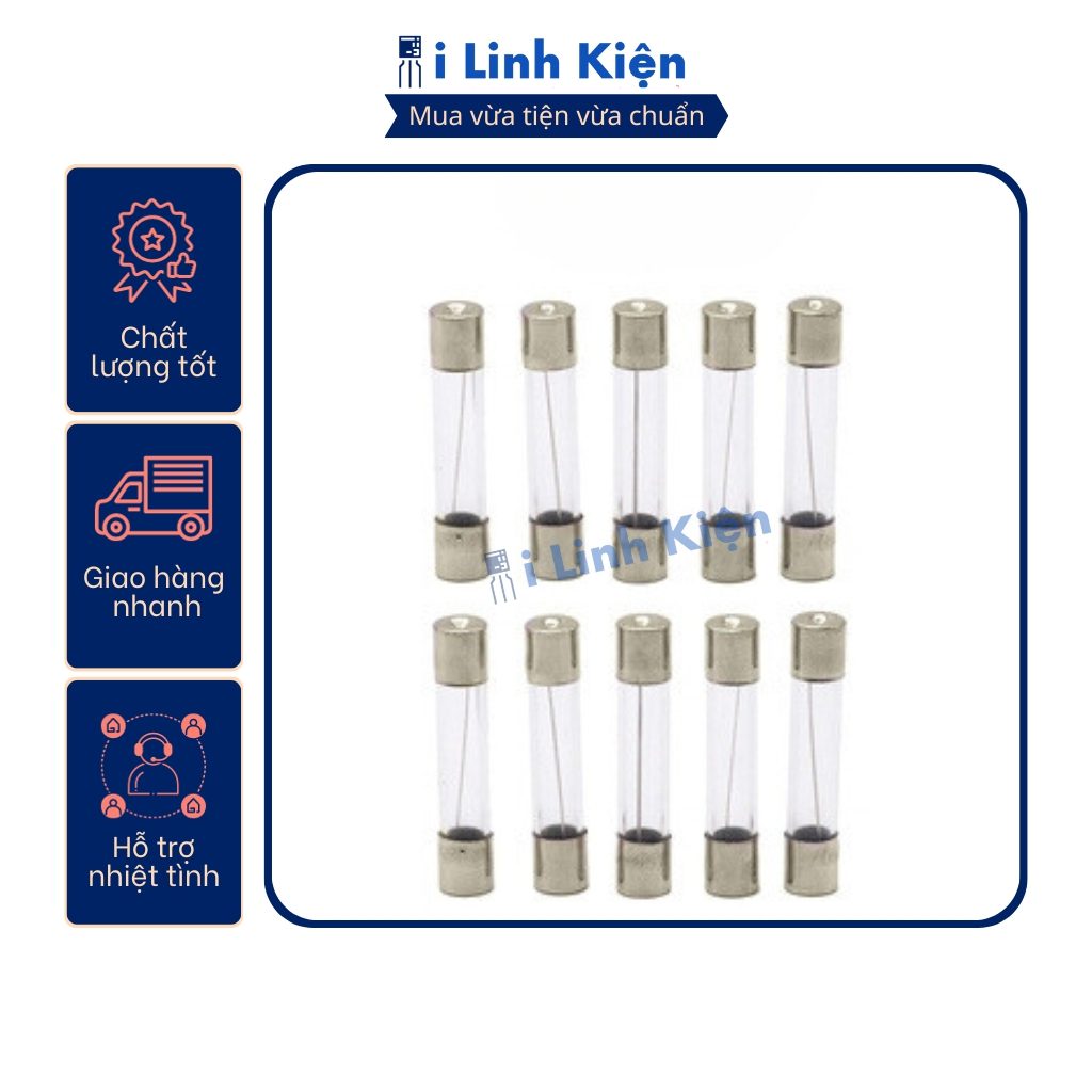 Cầu chì ống thủy tinh 1A/2A/3A/4A/5A/6A/7A/8A/10A/15A/20A/25A/30A 6x30mm.