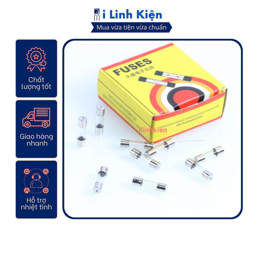 Cầu chì ống thủy tinh 1A/2A/3A/4A/5A/6A/7A/8A/10A nguyên hộp 100 chiếc.