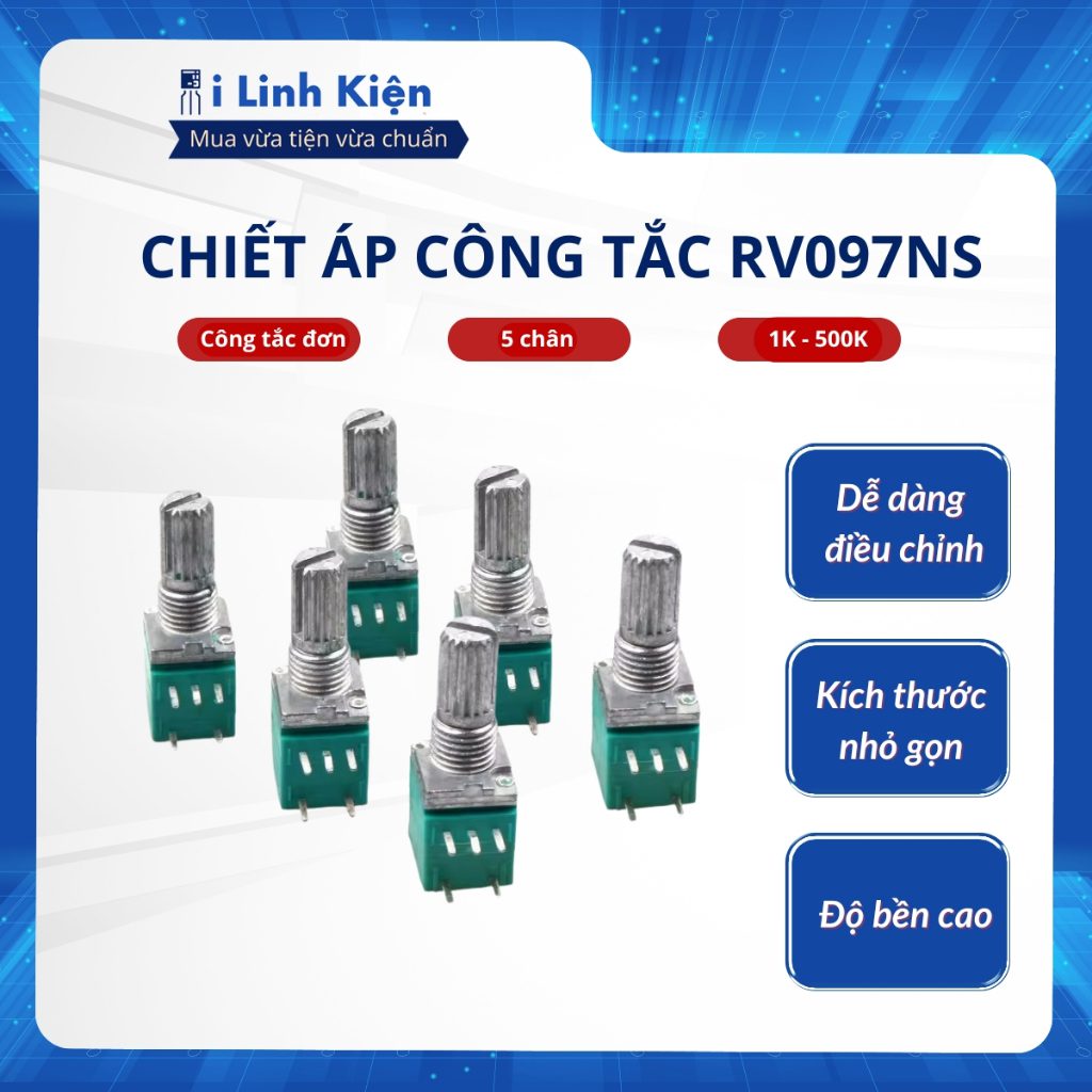 - Chiết áp công tắc đơn RV097NS xanh 5 chân B1K 1K