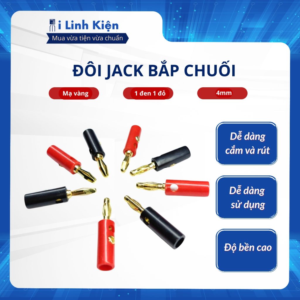 Combo đôi jack bắp chuối đực đỏ đen 4mm mạ vàng chất lượng tốt