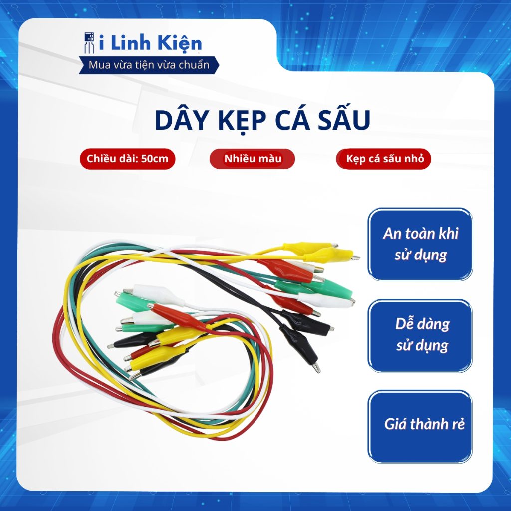 Dây kẹp cá sấu nhỏ 26mm loại tốt dài 50cm Giá trên là 1 sợi.