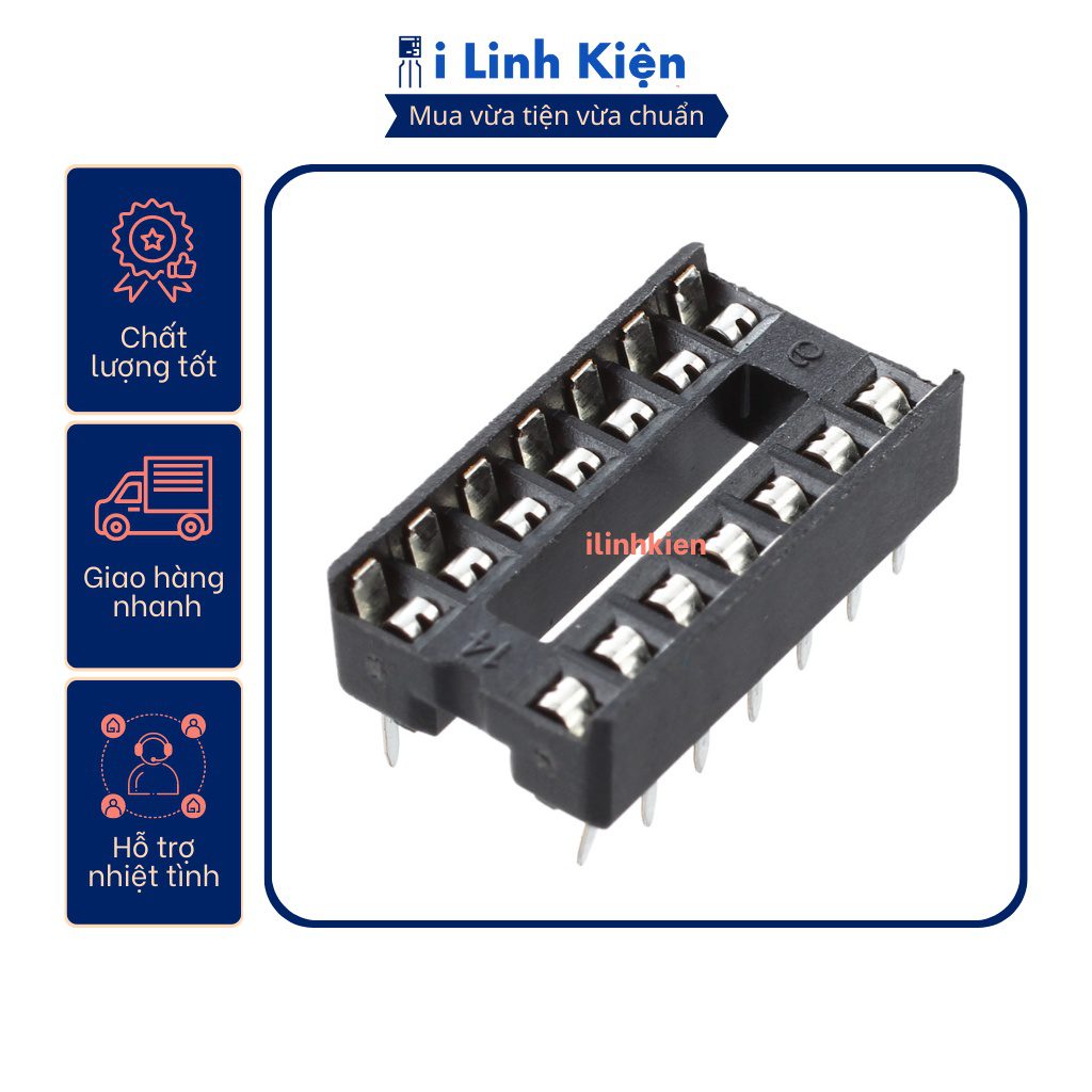 Đế IC 14 chân DIP-14 loại dẹp chất lượng tốt.