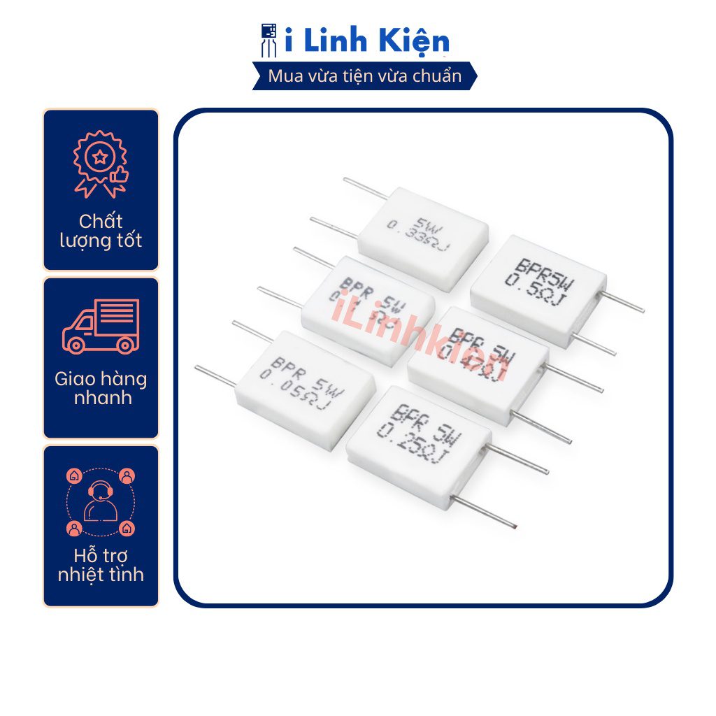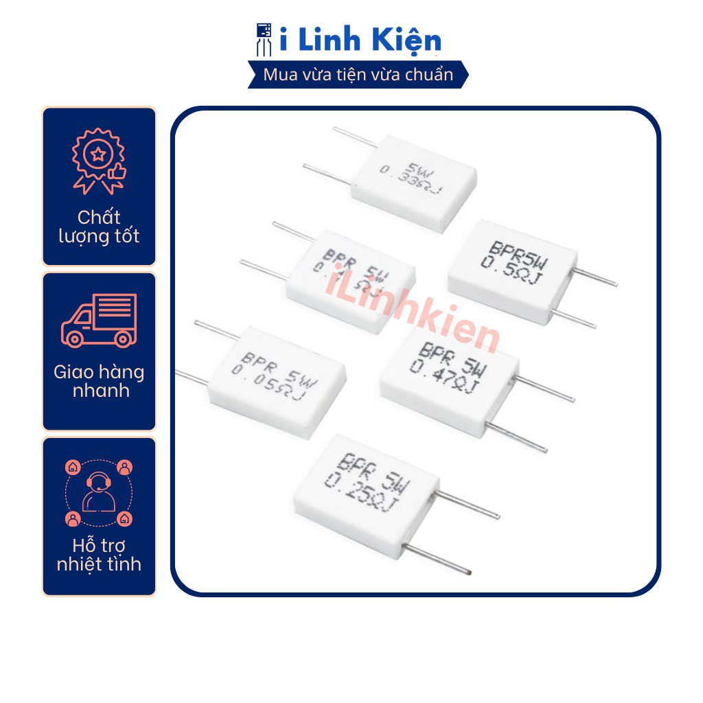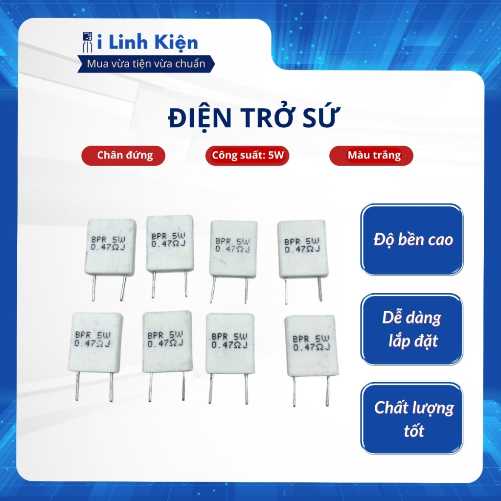 Gồm các loại điện trở sứ 5W chân đứng thông dụng.