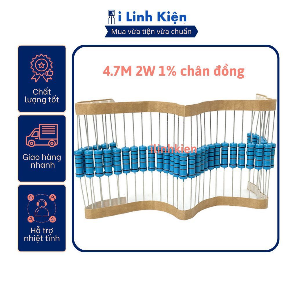 Điện trở vạch 2W 4.7M 1% chân đồng (túi 10 con)