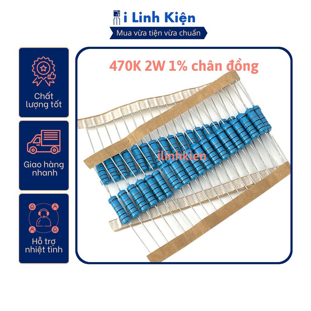 Điện trở vạch 2W 470K 1% chân đồng (túi 10 con)