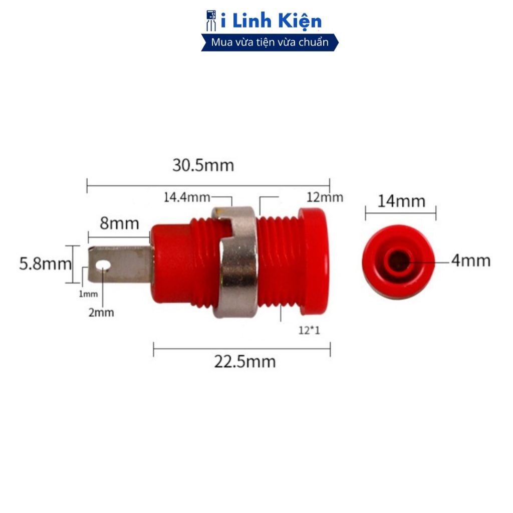 Thông số kỹ thuật jack bắp chuối cái : Chất liệu: Kim loại mạ Niken