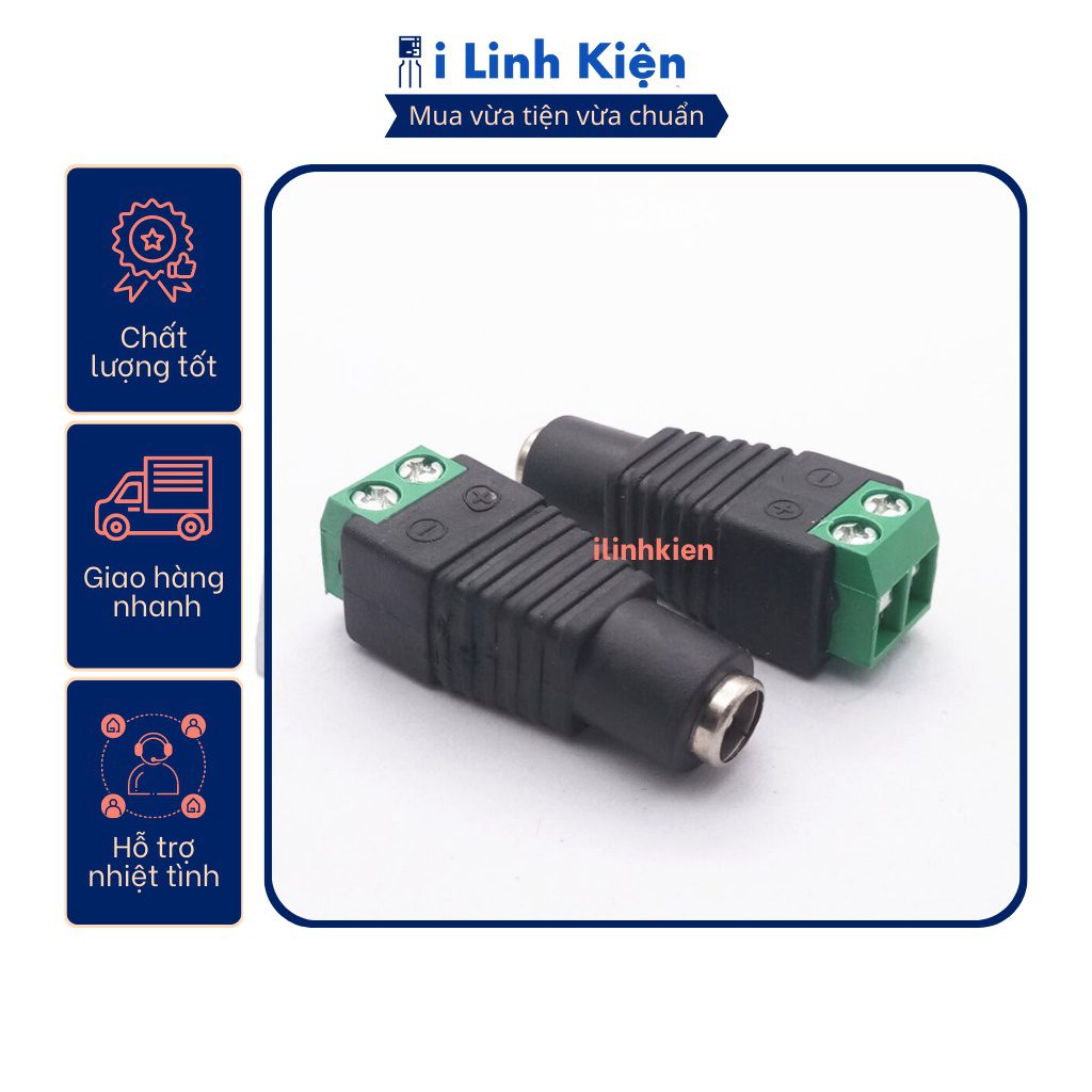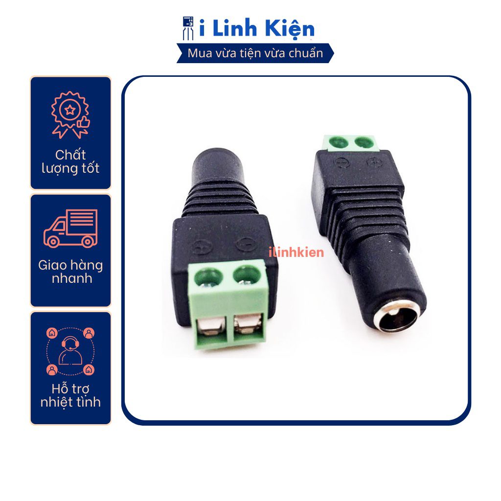 Jack nguồn DC cái 5.5×2.1mm đấu dây dùng vít.