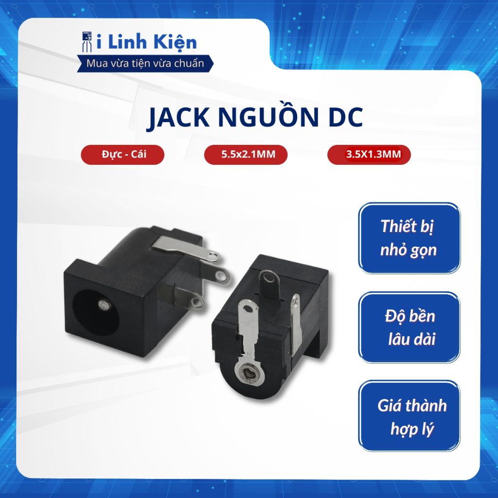 Jack nguồn DC cái đực 5.5×2.1mm 3.5×1.3mm chất lượng tốt.