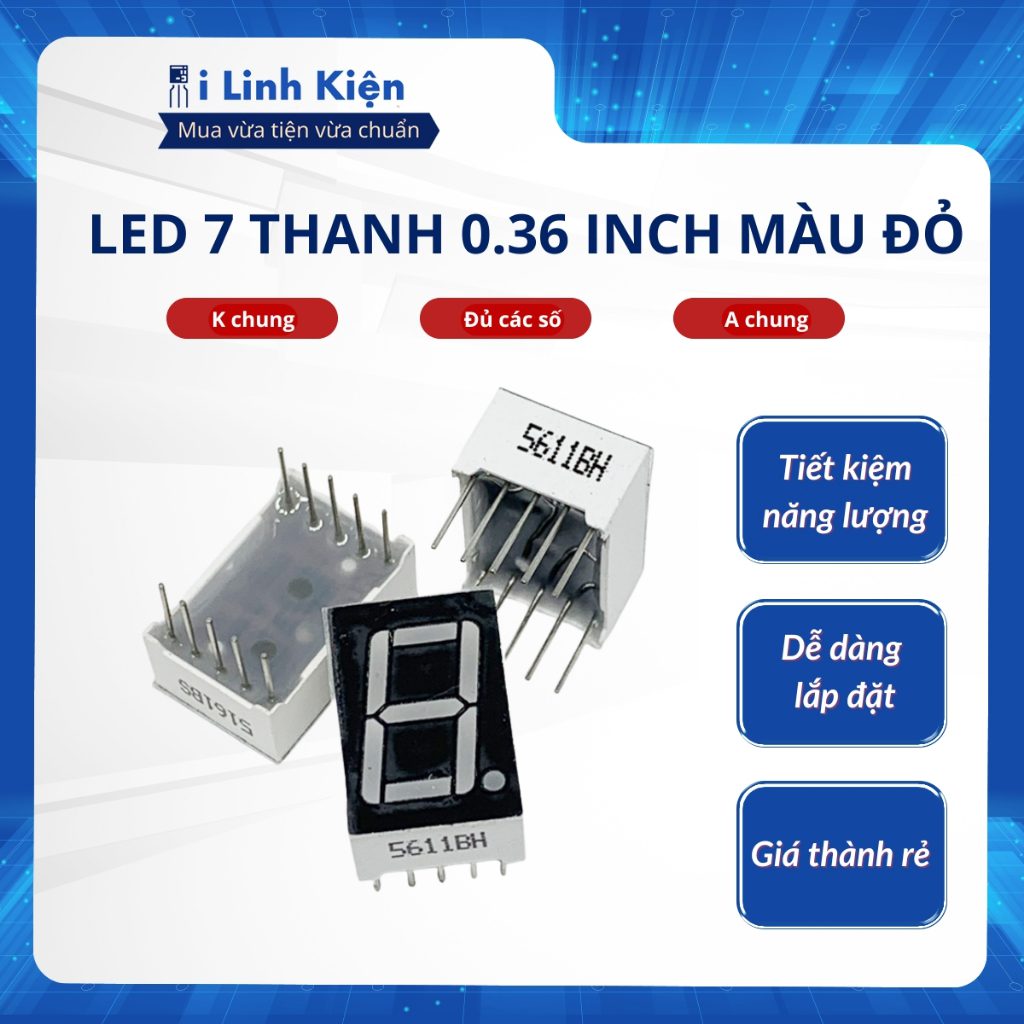 LED 7 thanh 0.36 inch 1 số màu đỏ K chung