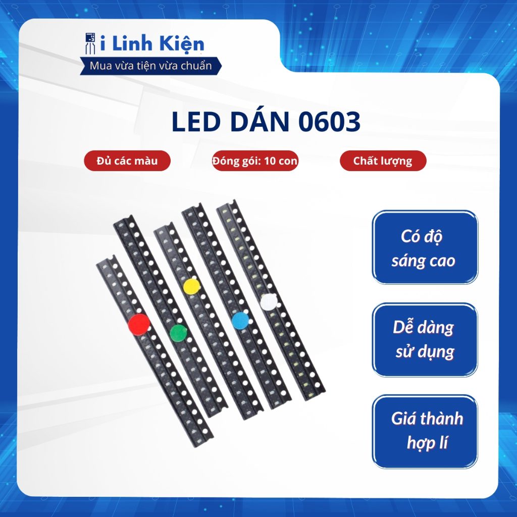 LED dán 0603 đủ các màu. Đơn giá bán là của 10 chiếc. Quý khách hàng đặt 1 là mua 10 chiếc, đặt 2 là mua 20 chiếc