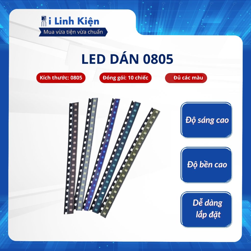 LED dán 0805 đủ các màu. Đơn giá bán là của 10 chiếc. Quý khách hàng đặt 1 là mua 10 chiếc, đặt 2 là mua 20 chiếc