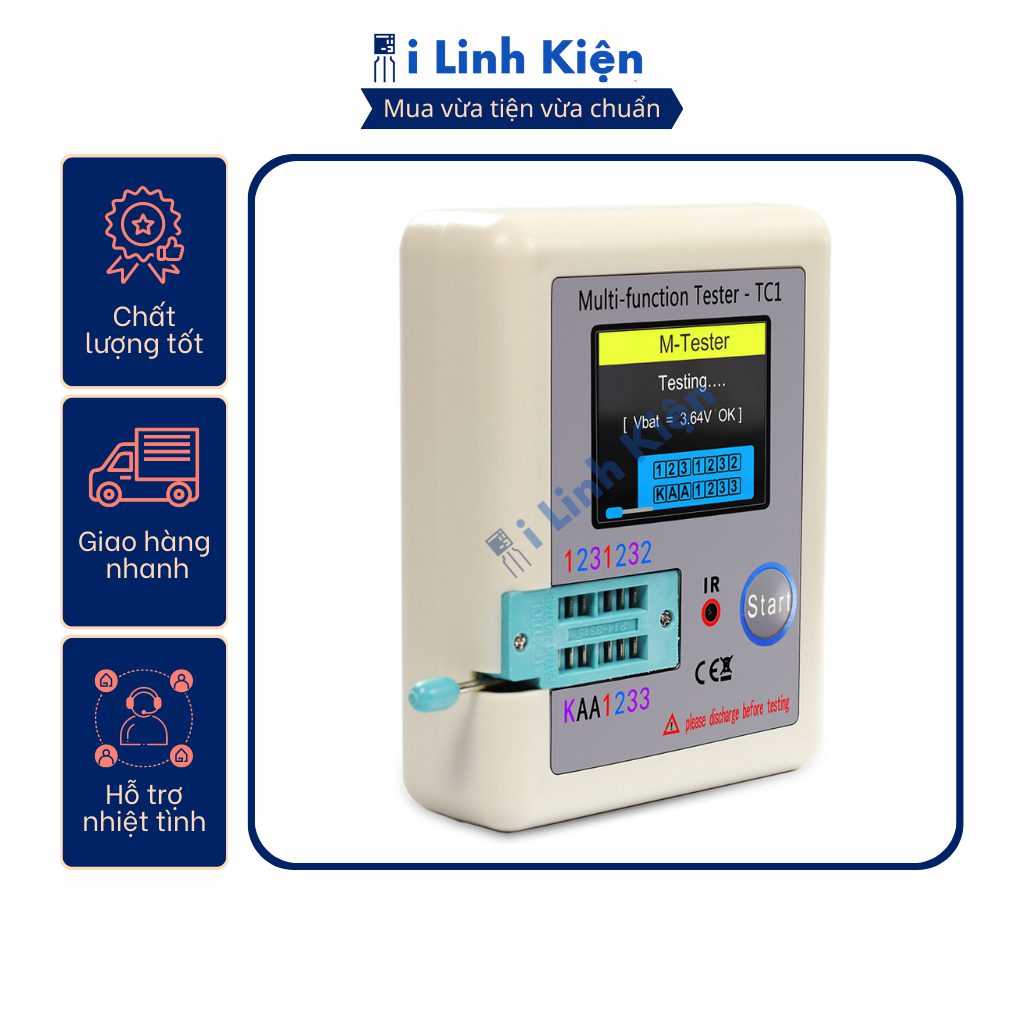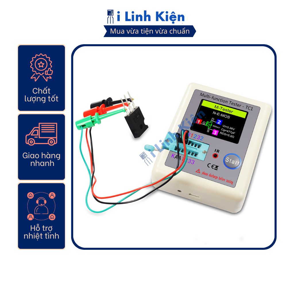 Hướng dẫn sử dụng máy đo linh kiện điện tử : – Cắm linh kiện vào lỗ chờ của máy cắm, kẹp dể giữ linh kiện khỏi bị rơi ,sau đó bấm nút START module test để bắt đầu test – Lưu khi đo đo tụ điện mọi người nhớ xả tụ để tránh làm hỏng thiết bị Lợi ích khách hàng nhận được khi mua hàng tại iLinhkien: – iLinhkien luôn ưu tiên quan tâm khách hàng, giải quyết vấn đề của khách hàng: cần linh kiện gì cũng có, không có thì đi lấy cho.