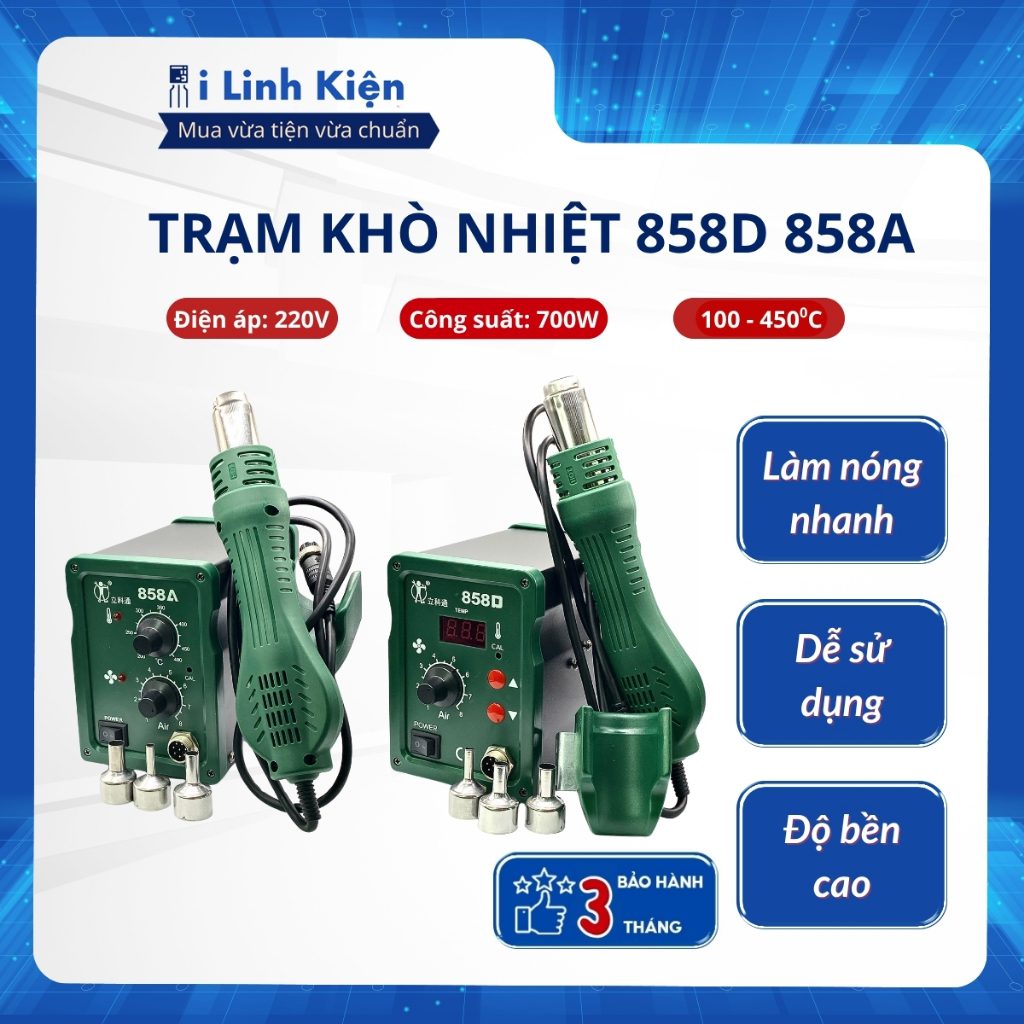 Máy khò trạm khò nhiệt 858A điều chỉnh tốc độ gió cao cấp chính hãng.
