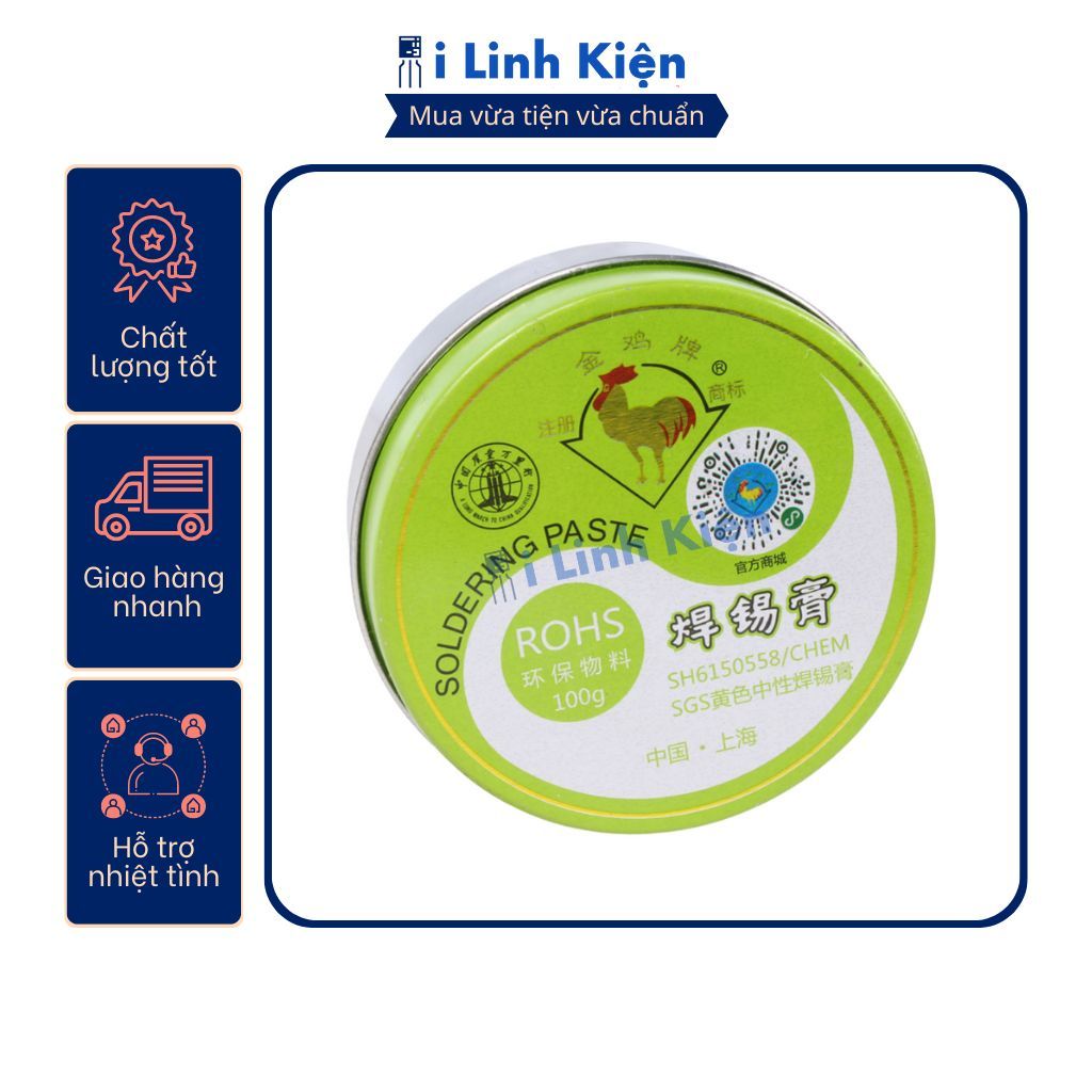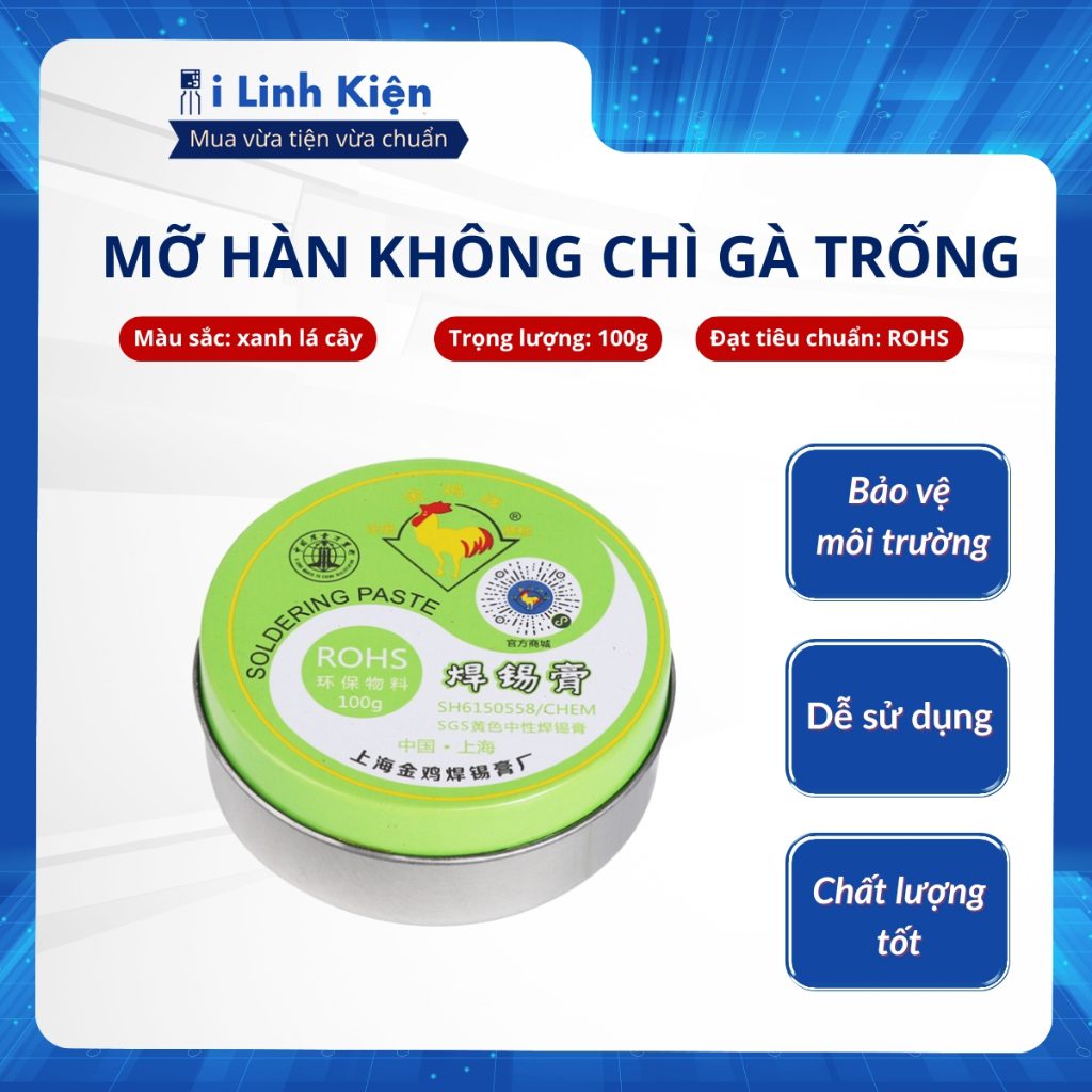 Mỡ hàn không chì gà trống 100g đạt chuẩn ROHS an toàn cho sức khoẻ.