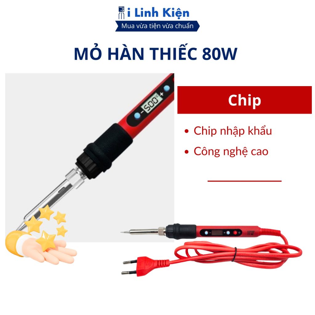 Hiệu suất cao: Công suất 80W giúp mỏ hàn nóng nhanh và duy trì nhiệt độ ổn định.