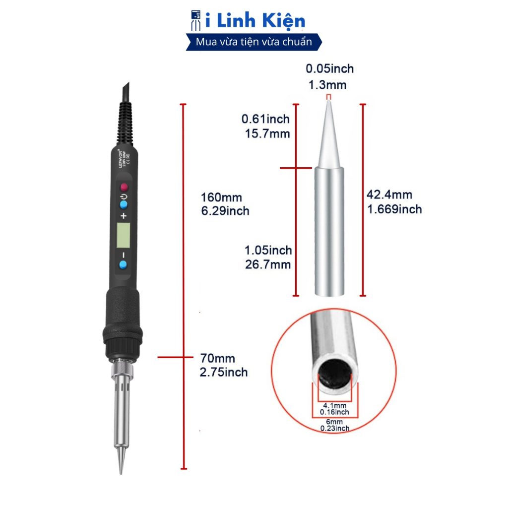 Đường kính đầu mỏ hàn: 1,05 inch (26,7mm)