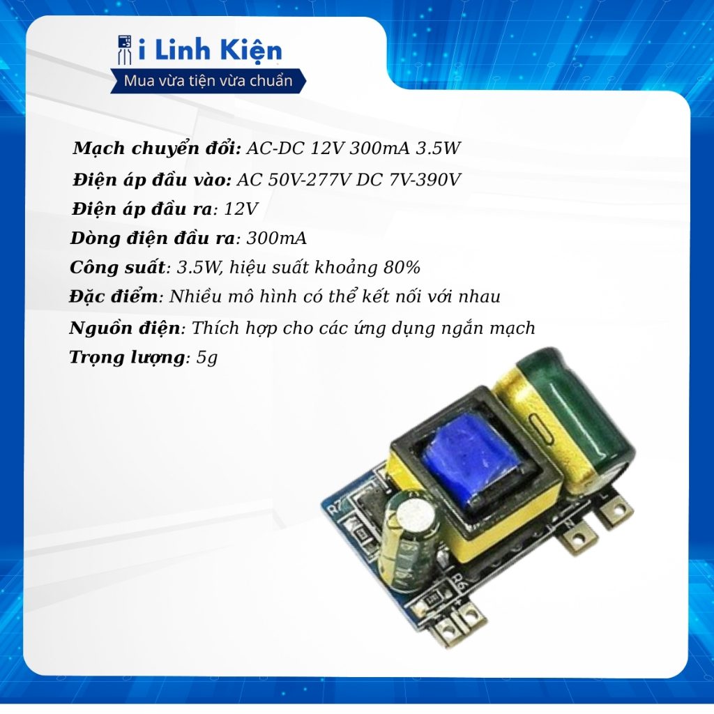 Module nguồn AC 220V sang DC 12V 300mA chất lượng tốt.