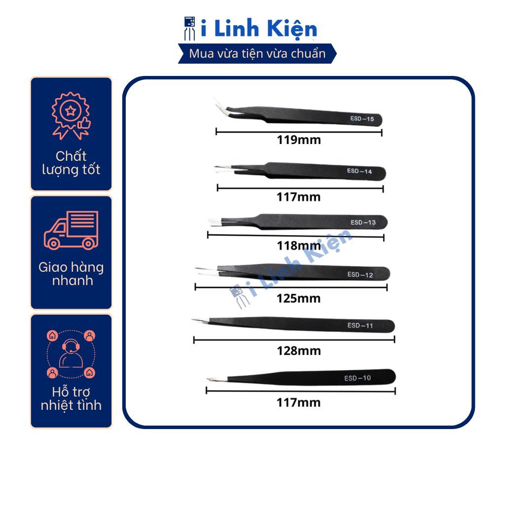 Thông số kỹ thuật bộ nhíp gắp linh kiện điện tử : – Chất liệu : Thép không gỉ – Ứng dụng : Sửa chữa điện tử , nhặt lông , làm nail ,…