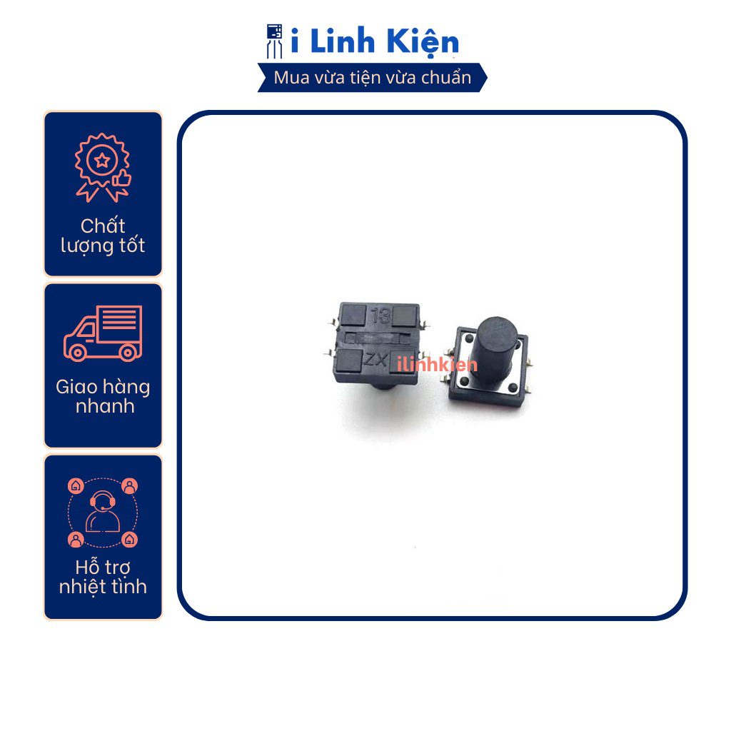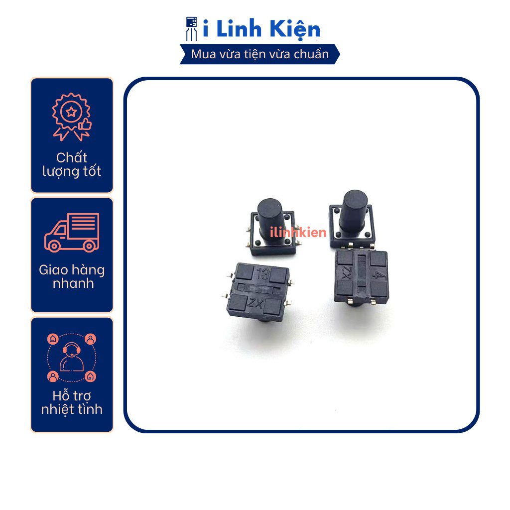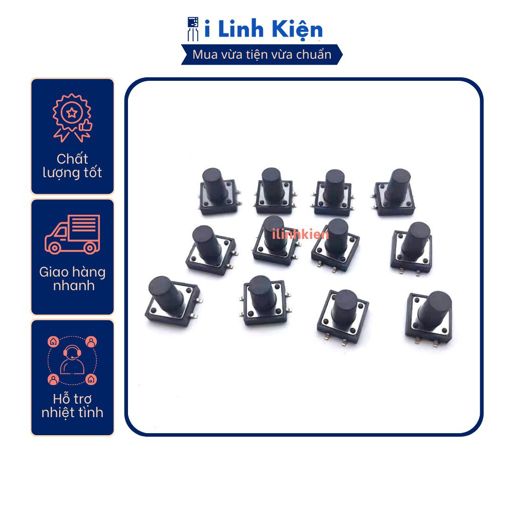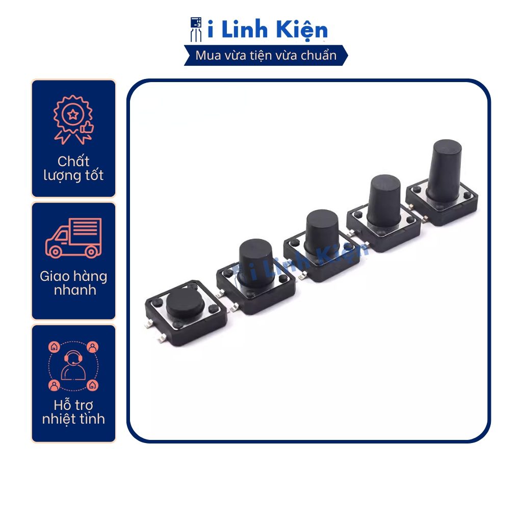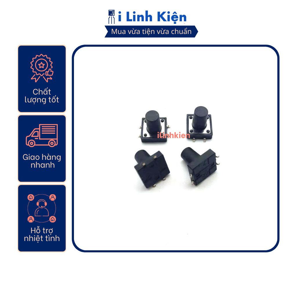 - Nút nhấn 4 chân 12x12x4.3mm – Nút nhấn 4 chân 12x12x5mm – Nút nhấn 4 chân 12x12x6mm – Nút nhấn 4 chân 12x12x7mm – Nút nhấn 4 chân 12x12x10mm – Nút nhấn 4 chân 12x12x12mm – Nút nhấn 4 chân 12x12x14mm – Nút nhấn 4 chân 12x12x18mm Lợi ích khách hàng nhận được khi mua hàng tại iLinhkien: – iLinhkien luôn ưu tiên quan tâm khach hàng, giải quyết vấn đề của khách hàng: cần linh kiện gì cũng có, không có thì đi lấy cho.