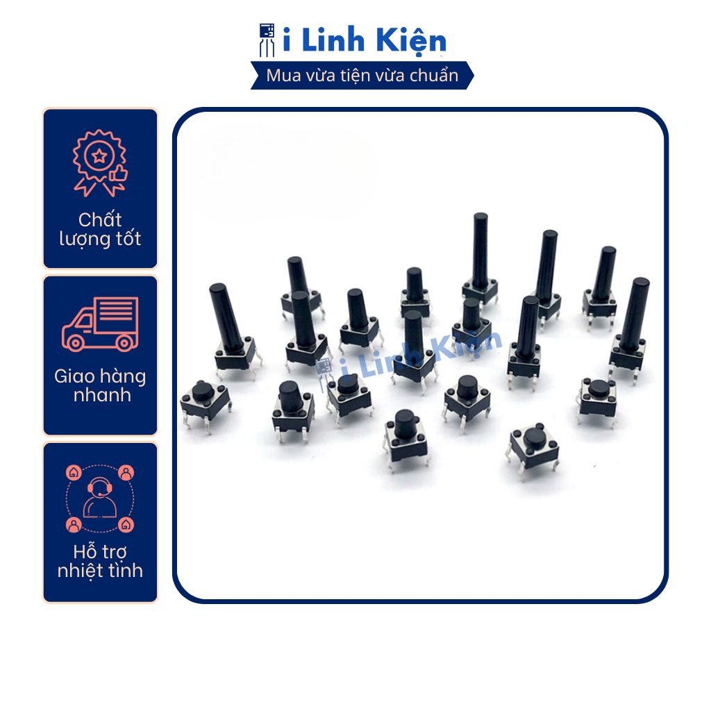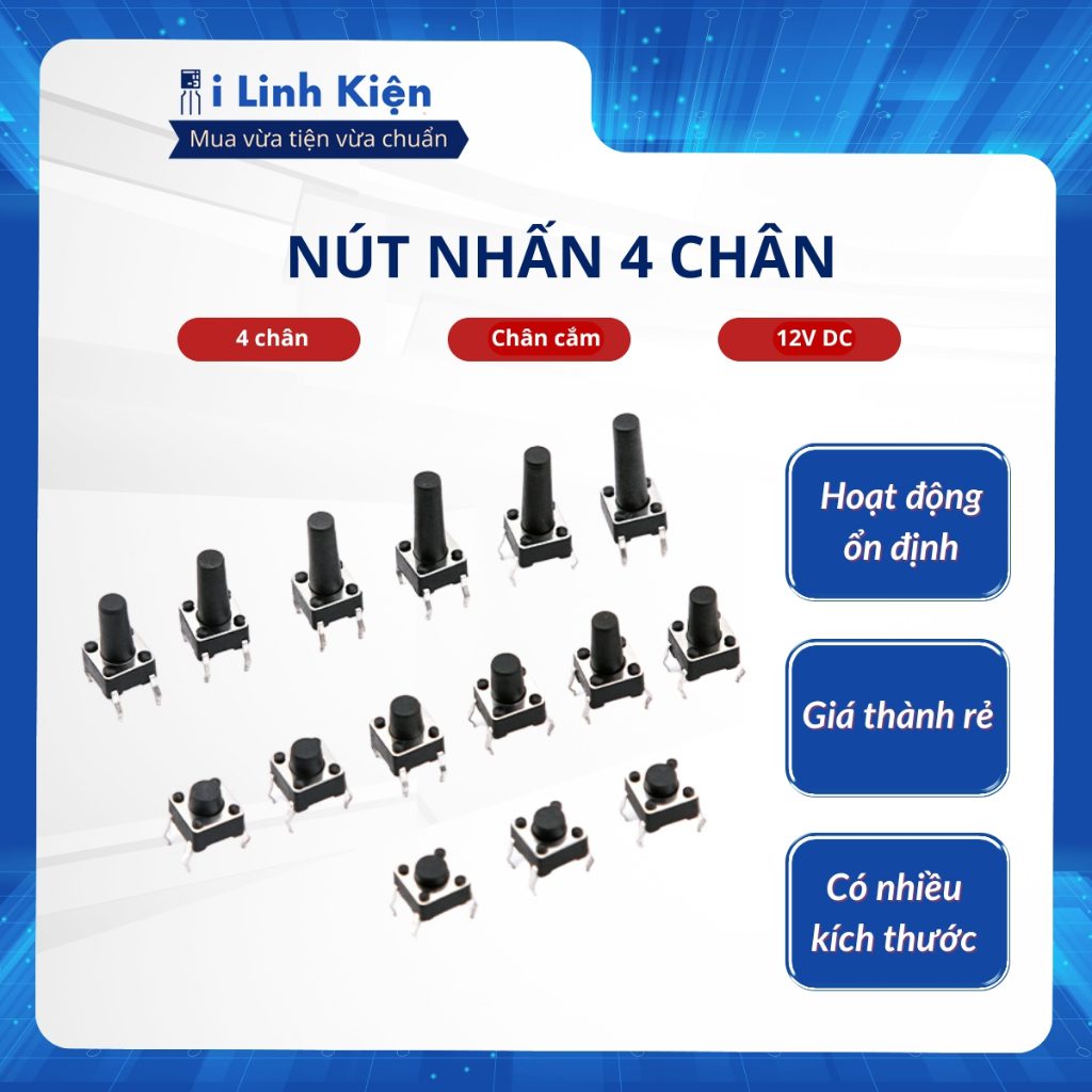 Nút nhấn 4 chân 6x6x5/6/7/8/9/10/12/14/15/17mm tiếp điểm đồng.