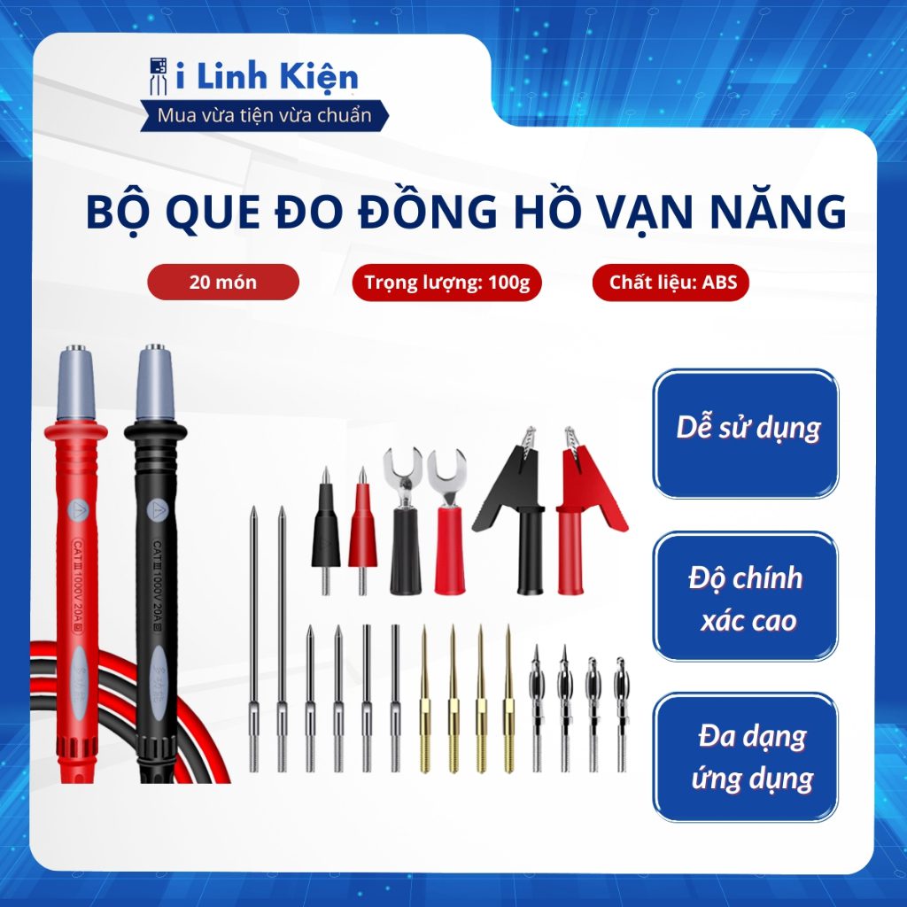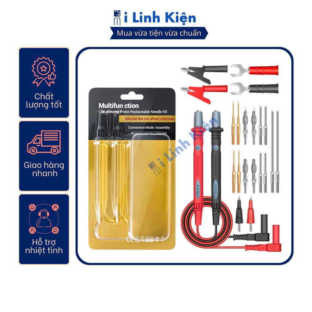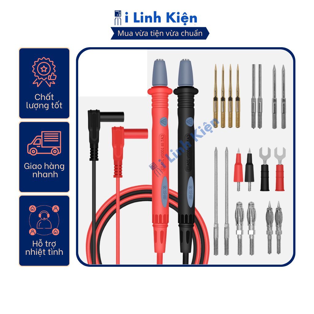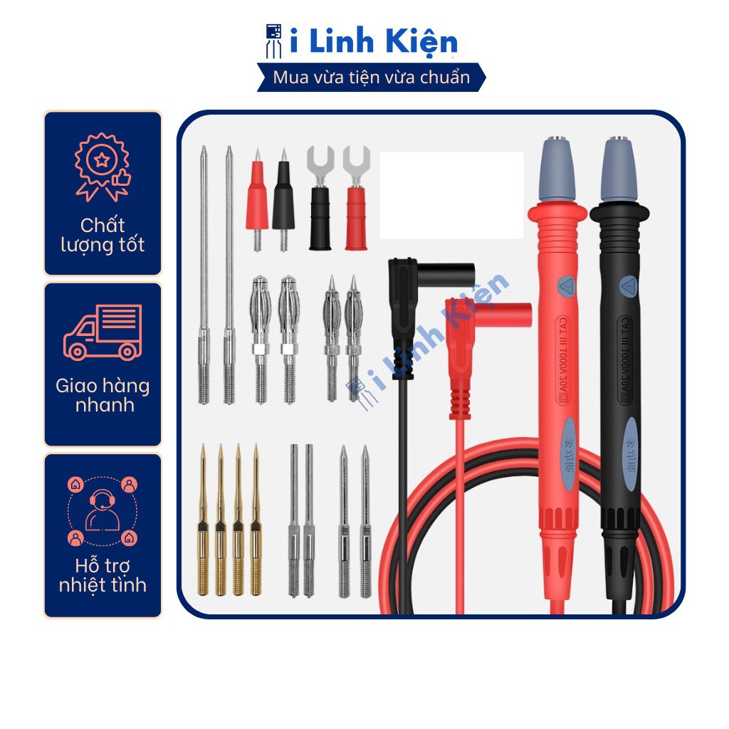 Nếu bạn biết có 1 que đo chất liệu silicon siêu mềm dẻo , chống đứt chống cháy đầu kim đa dạng các loại giúp dễ dàng đo ở bất cứ vị trí nào trên bo mạch thì bạn có muốn sở hữu nó chứ. Hãy để iLinhkien giới thiệu cho anh em thợ một bộ que đo đồng hồ vạn năng đáp ứng được các yêu cầu đó. Càng sử dụng về sau càng thấy được những lợi ích mà bộ que đo đồng hồ vạn năng mang lại , đây là bộ dây đo đồng hồ được yêu các kỹ thuật viên nước ngoài tin dùng .