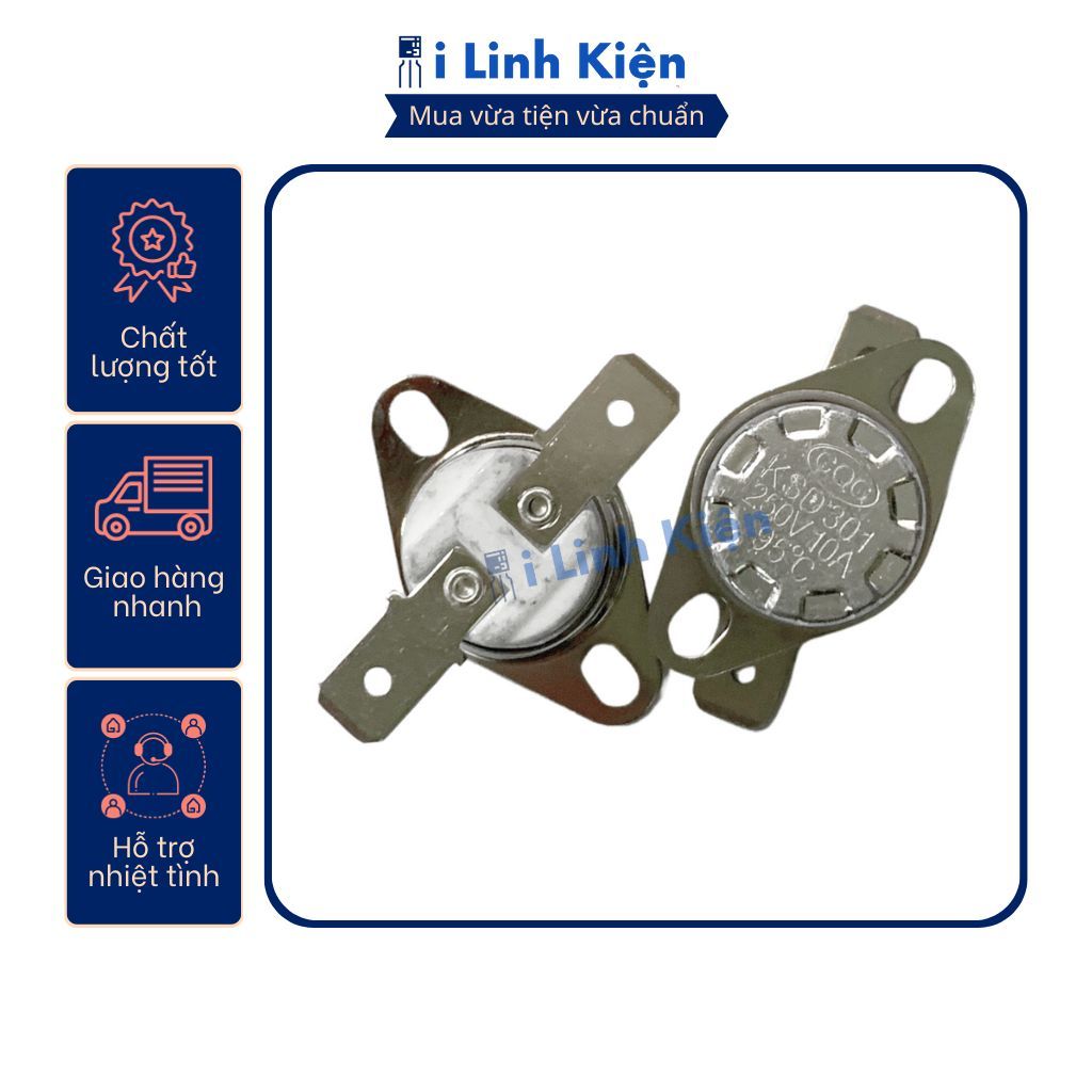 Rơ le nhiệt KSD301 đế sứ chịu nhiệt giá trị từ 85 – 260 độ thường đóng 10A 250V chất lượng cao.