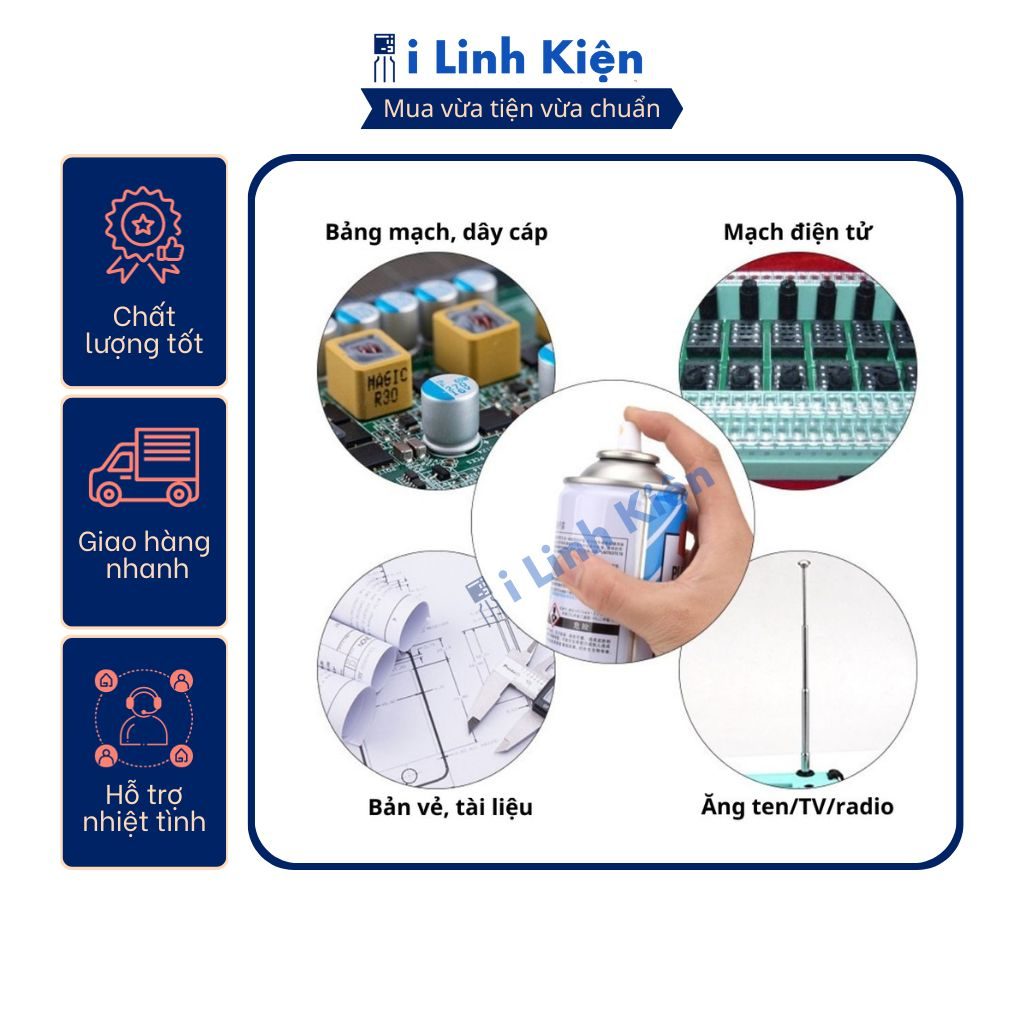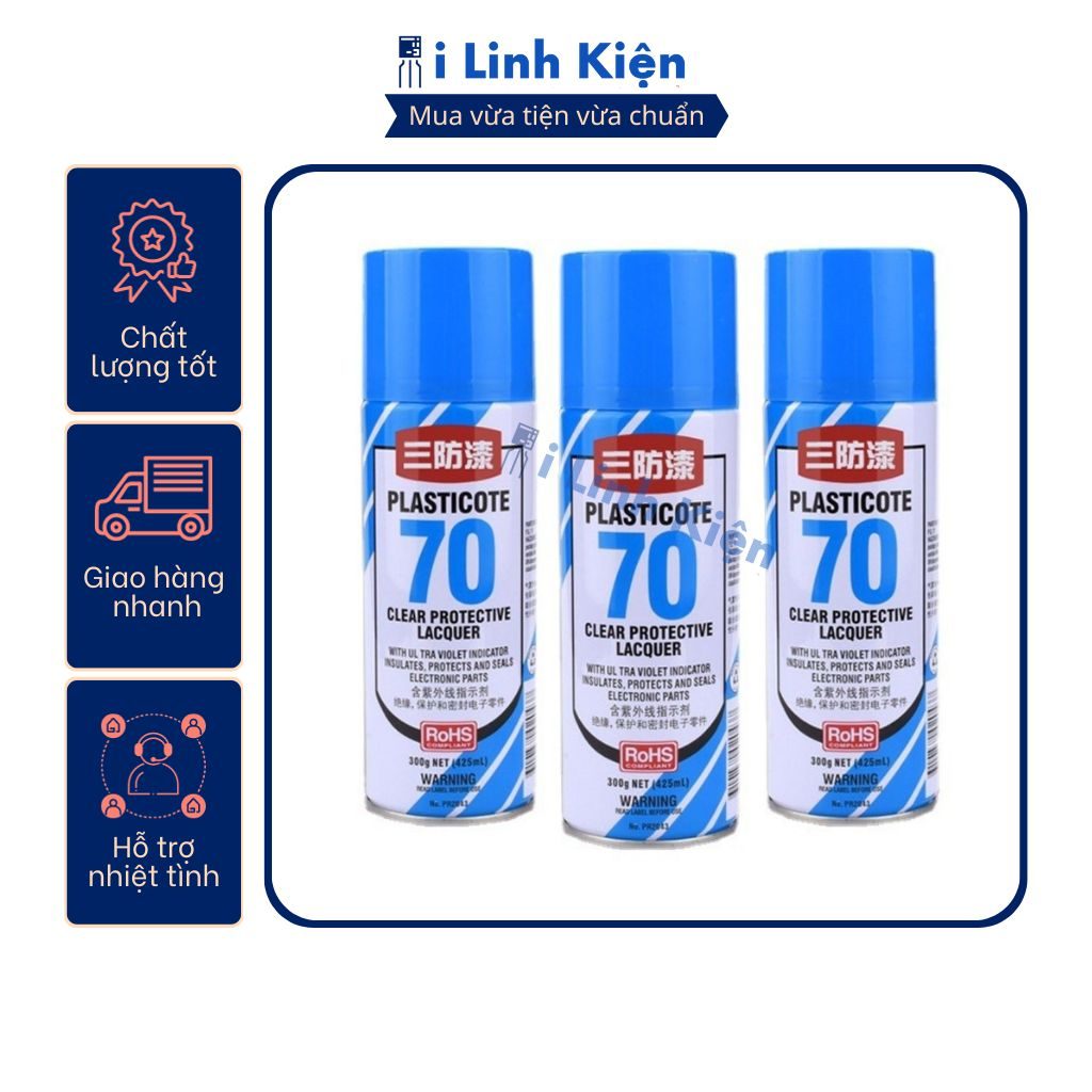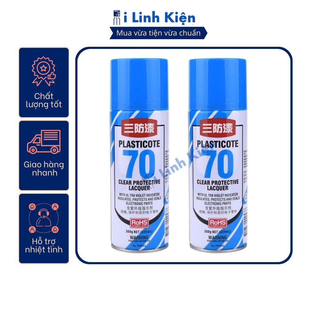- Ứng dụng: sơn phủ mạch in công nghiệp hoặc mạch in làm tay chống nước và chống ăn mòn oxi hóa mạch. Giúp bảo vệ mạch khỏi các yếu tố từ môi trường, côn trùng. Sơn nhanh khô màu trong suốt thuận tiện trong quá trình sử dụng.