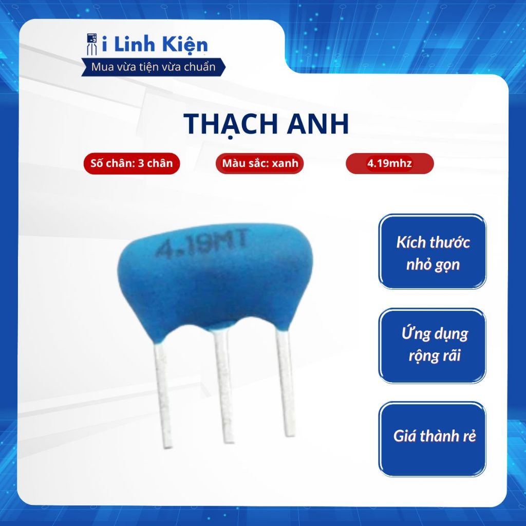 - Thạch anh là bộ dao động khá ổn định để tạo ra tần số dao động cho vi điều khiển. Đa số các mạch điều khiển đều dùng thạch anh có thể là Thạch anh 4MHz, 8MHz….mỗi loại sẽ cho ra 1 xung nhịp khác nhau. Thạch anh 3 chân cắm thực chất là thạch anh 2 chân được gắn thêm tụ điện bên trong để tạo thành chân thứ 3.