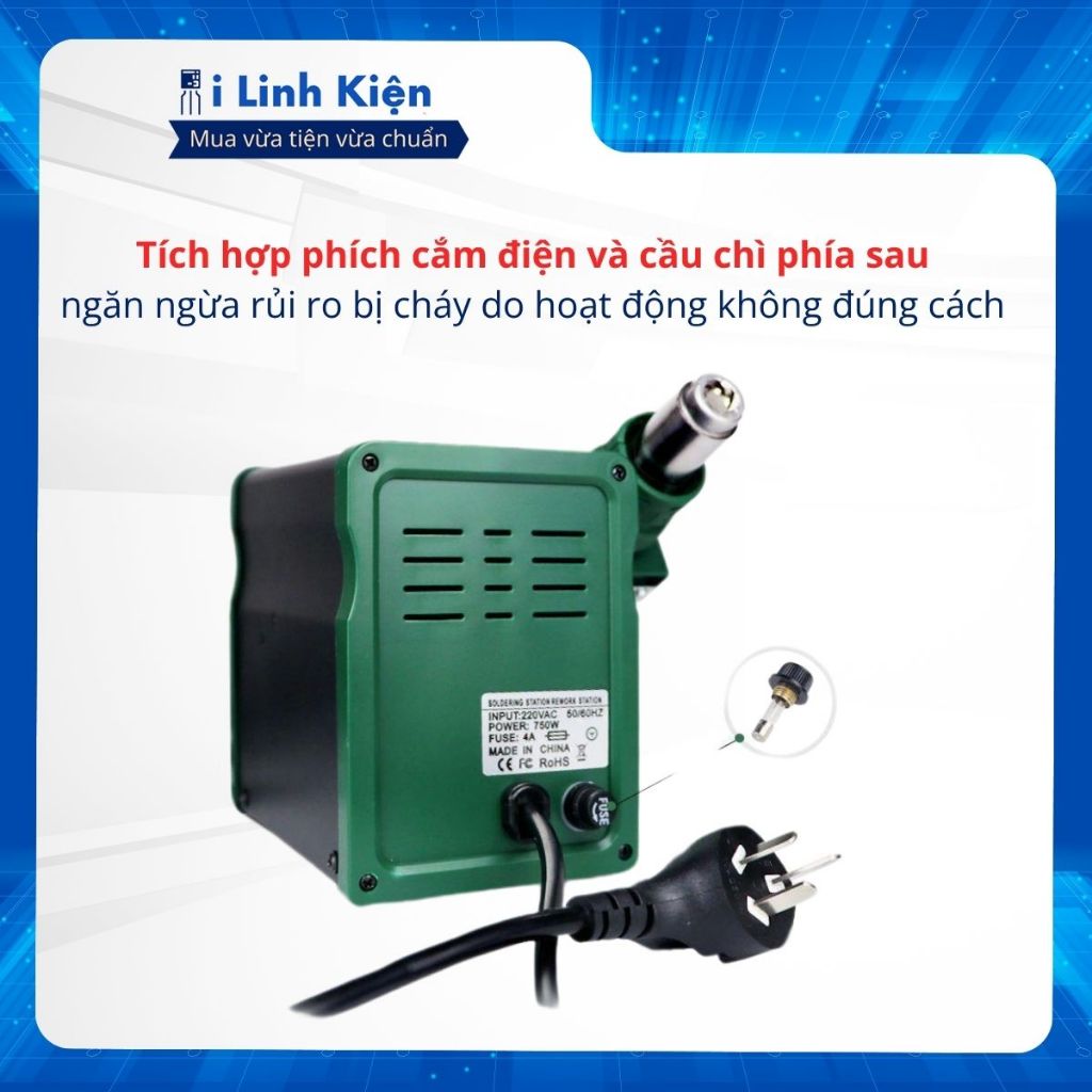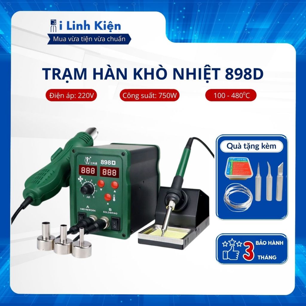 Trạm khò hàn nhiệt 898D công suất lớn gia nhiệt nhanh có chế độ tự động ngắt thông minh ILinhkien