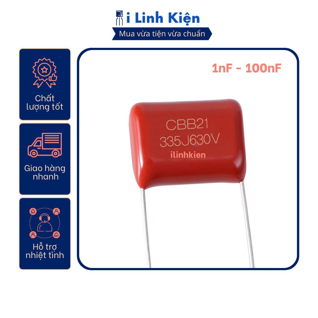 Điện áp tụ điện: 630V Các trị số điện dung của tụ: – Tụ kẹo CBB 1nF 10mm