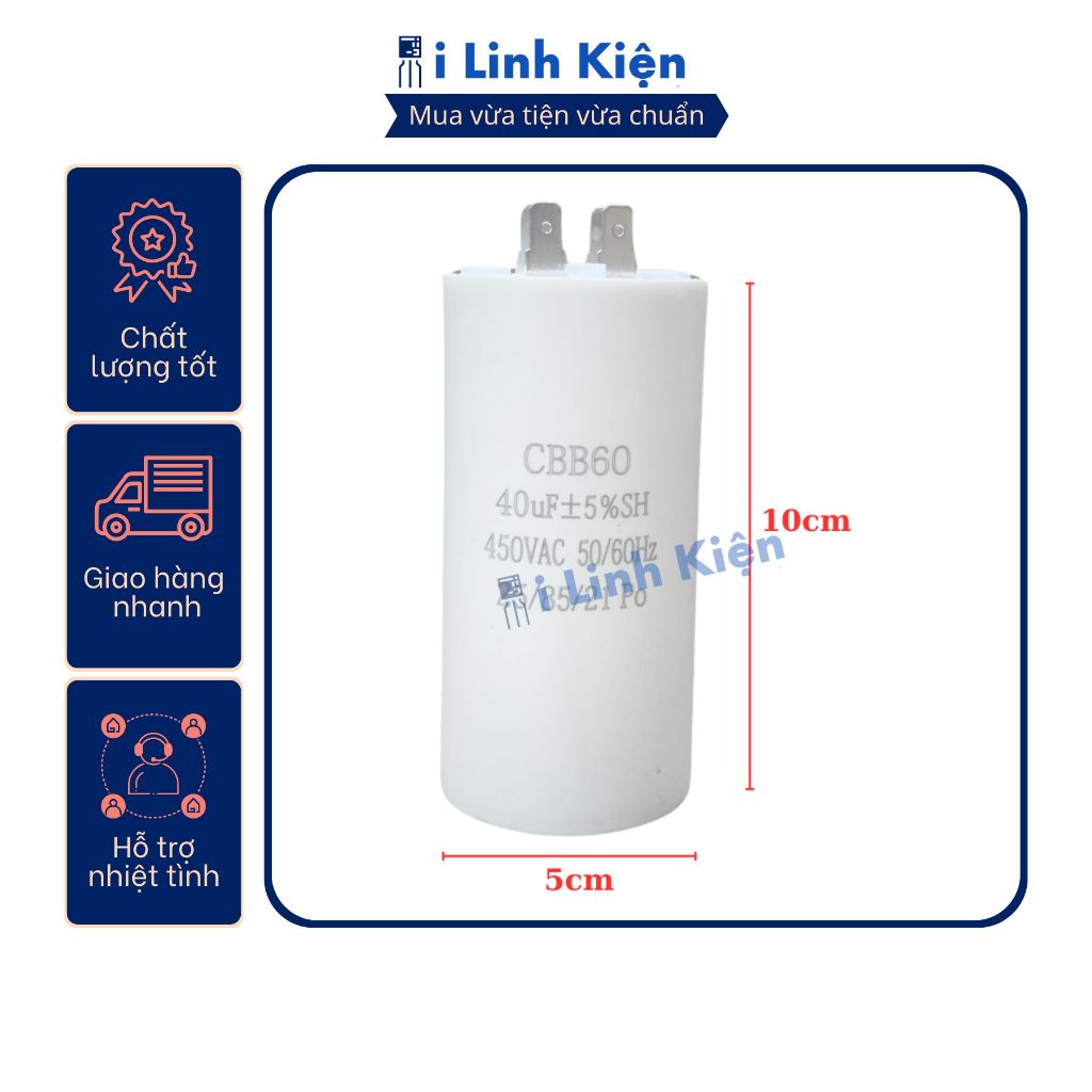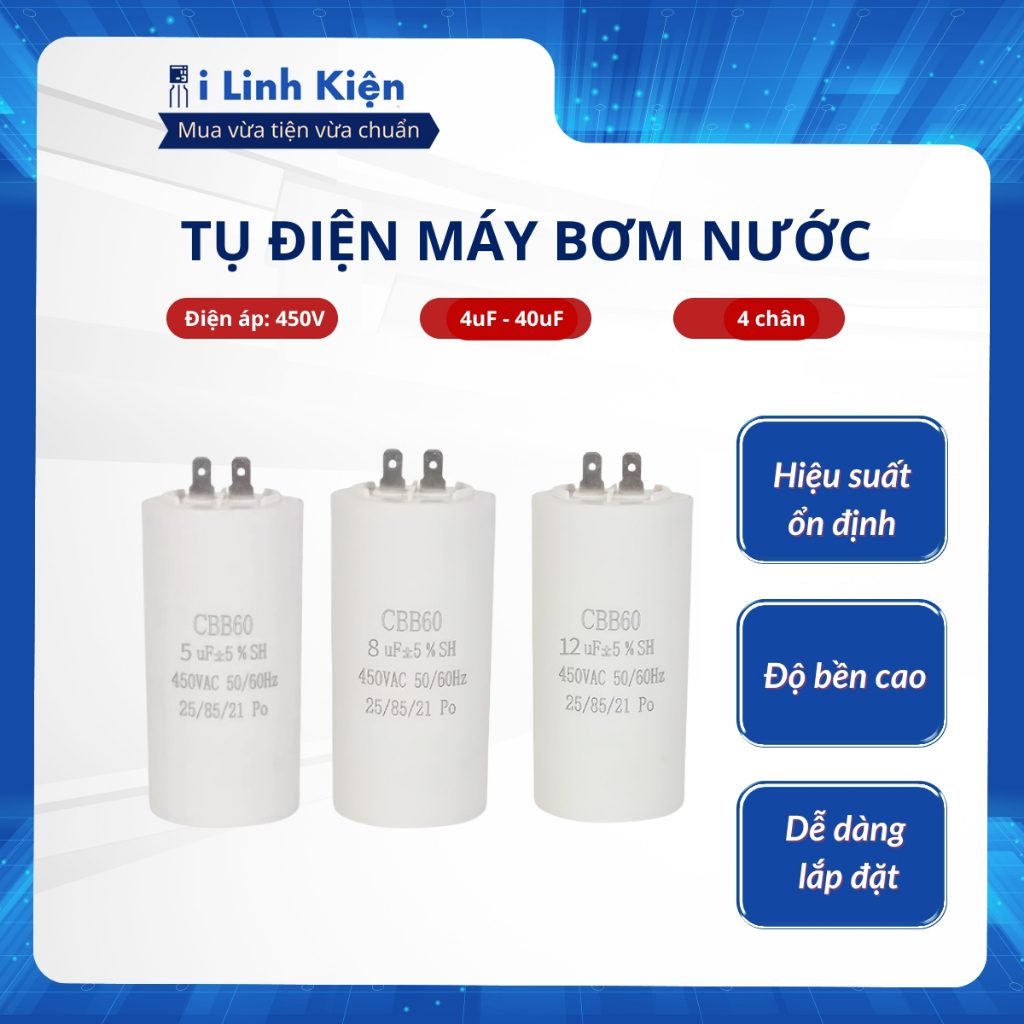 Tụ điện máy bơm nước CBB60 450V giá trị từ 4uF-40uF 4 chân chất lượng cao.