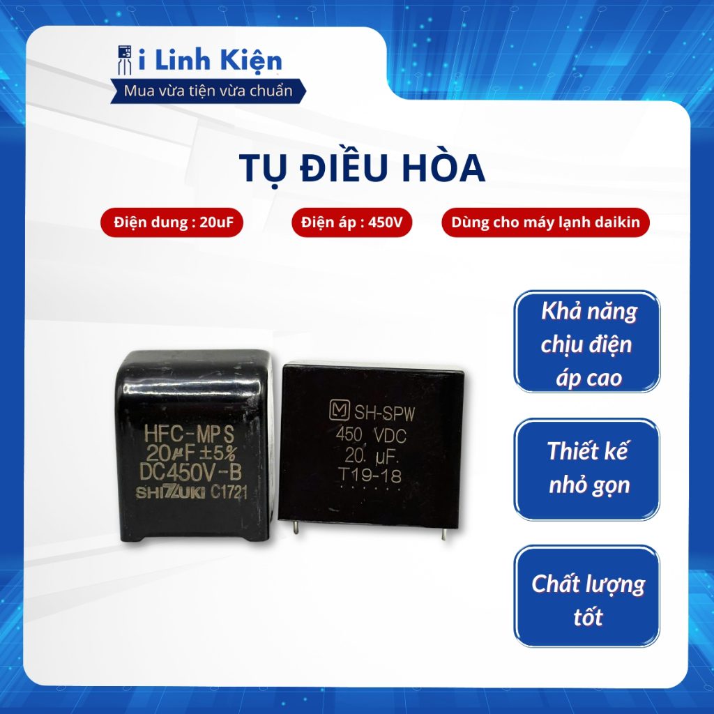 Thông số kỹ thuật tụ điều hoà : – Điện dung : 20uF
