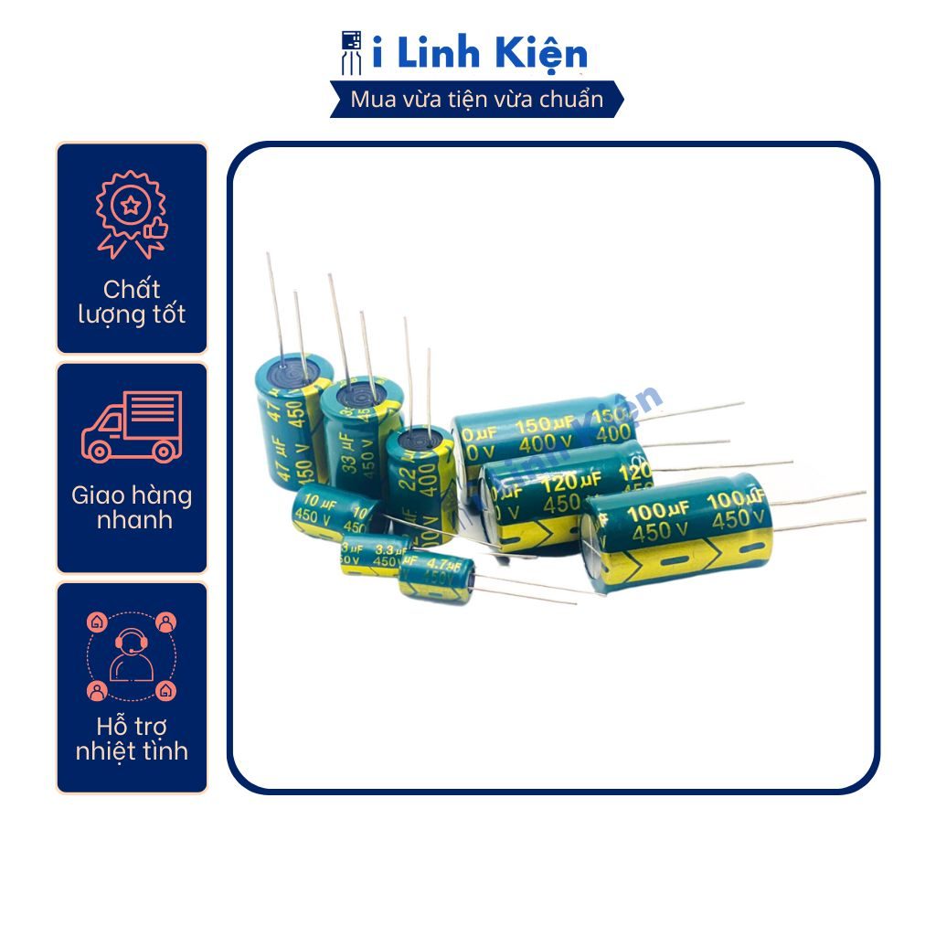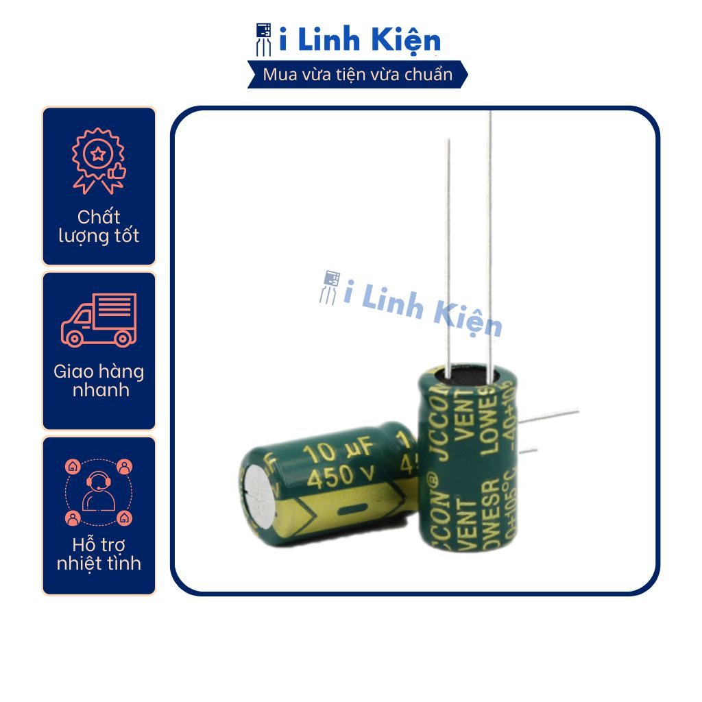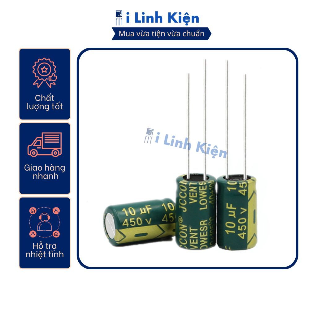 Tụ hóa 450V 10uF 10x17mm tần số cao chất lượng tốt.