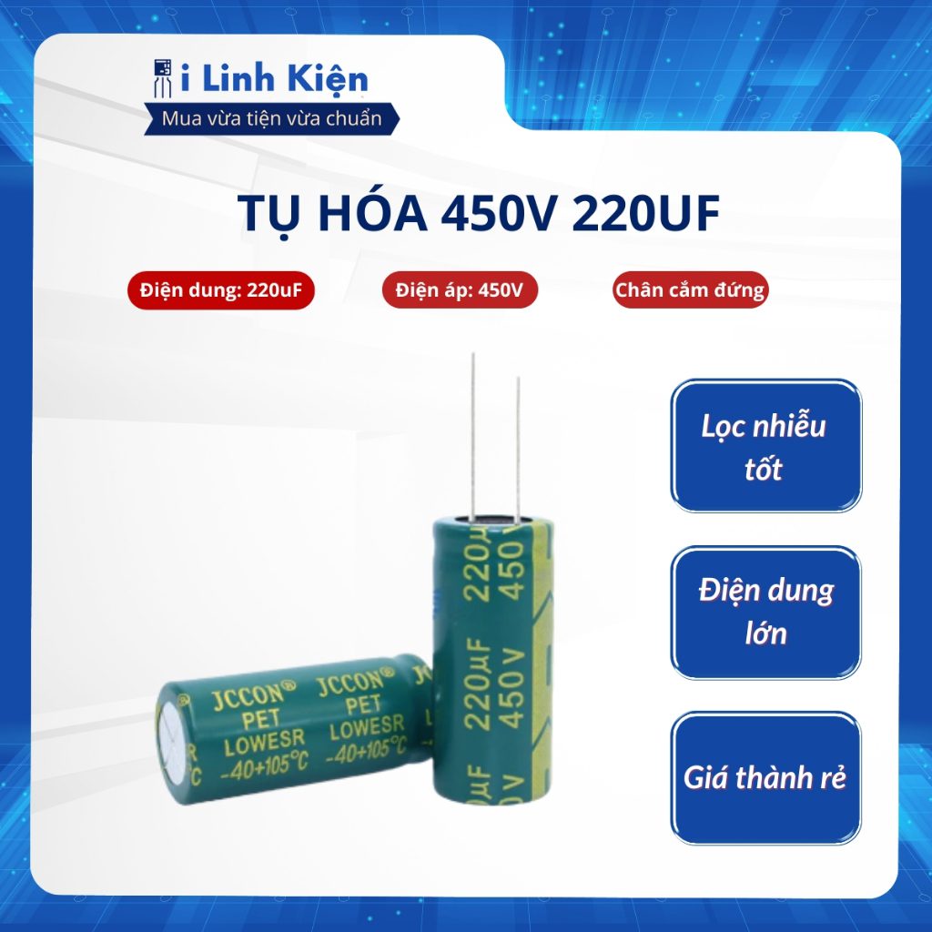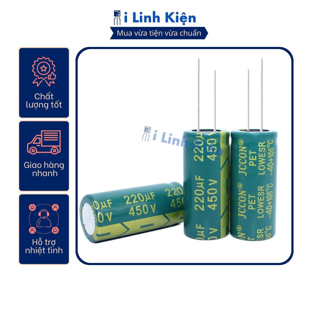 Tụ hóa 450V 220uF 18x40mm JCCON tần số cao.