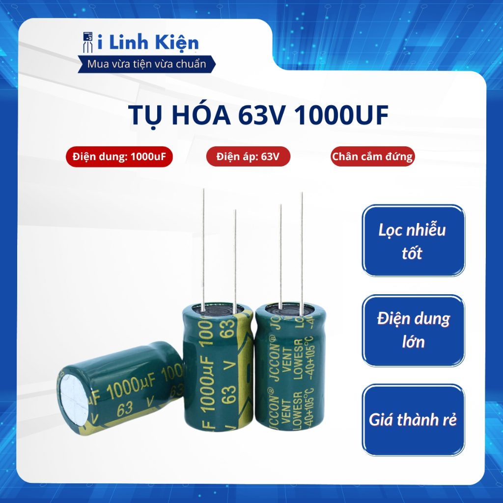 Tụ hóa 63V 1000uF 16x25mm tần số cao chất lượng tốt.