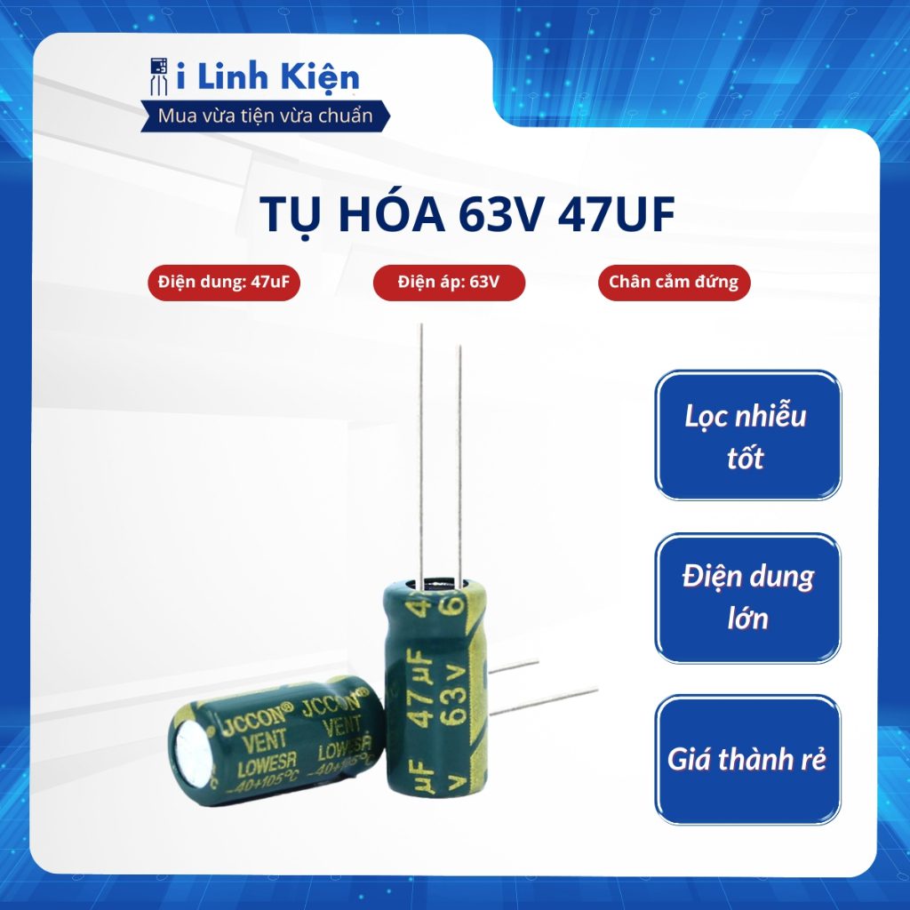 Tụ hóa 63V 47uF 6x12mm tần số cao chất lượng tốt.