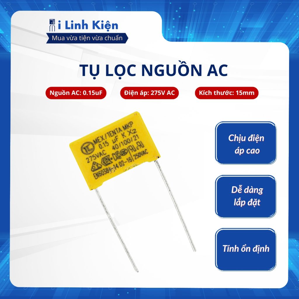 Tụ lọc nguồn AC 0.15uF 275V 15mm