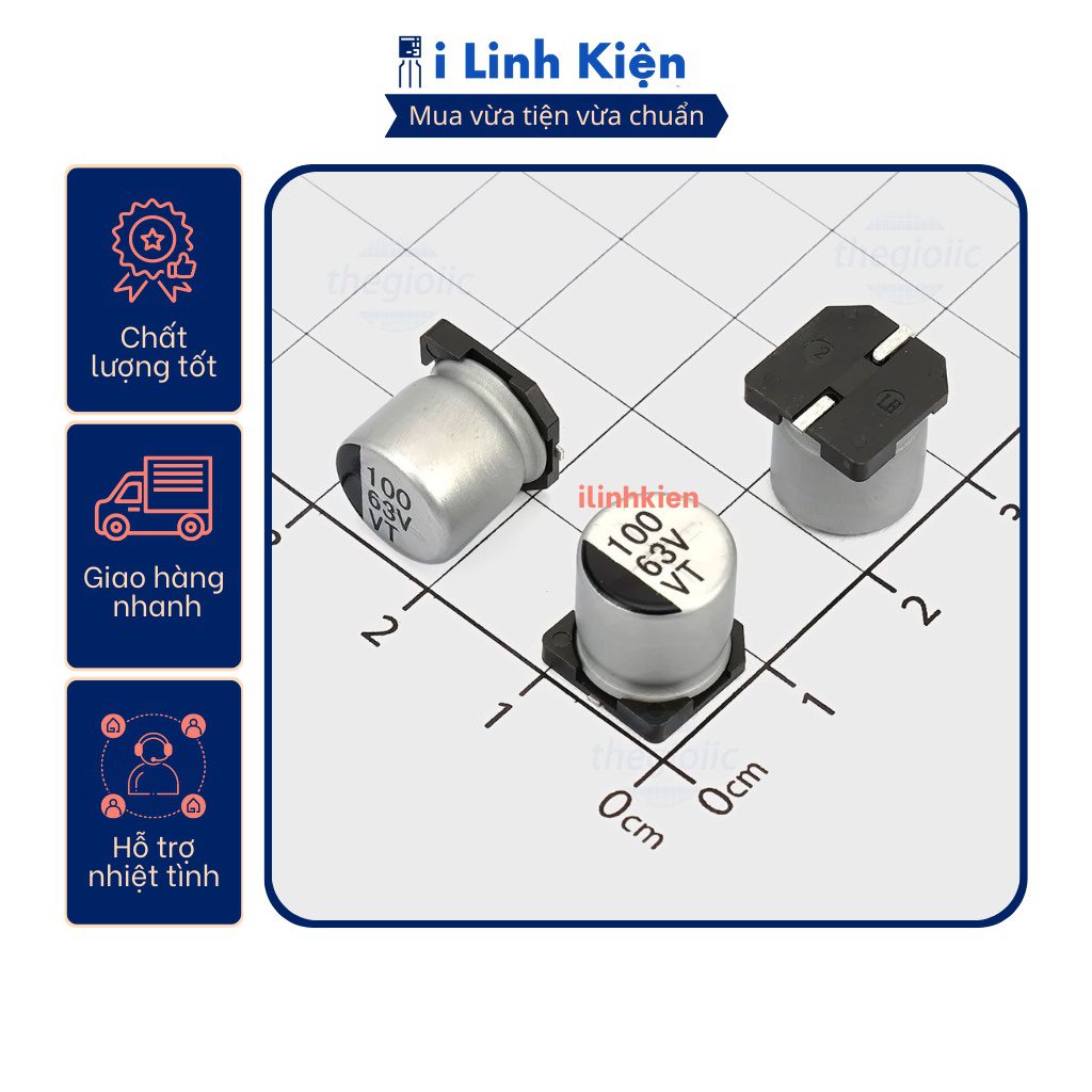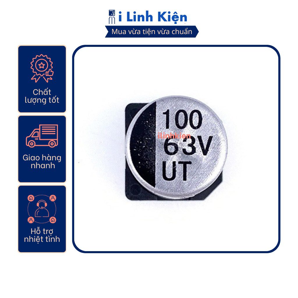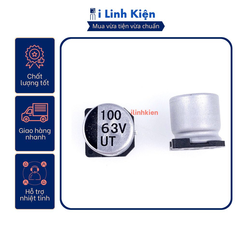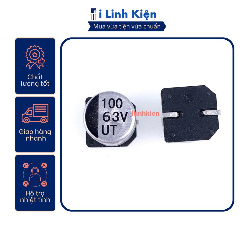 Tụ nhôm 63V 100uF 10x10mm chính hãng chất lượng tốt