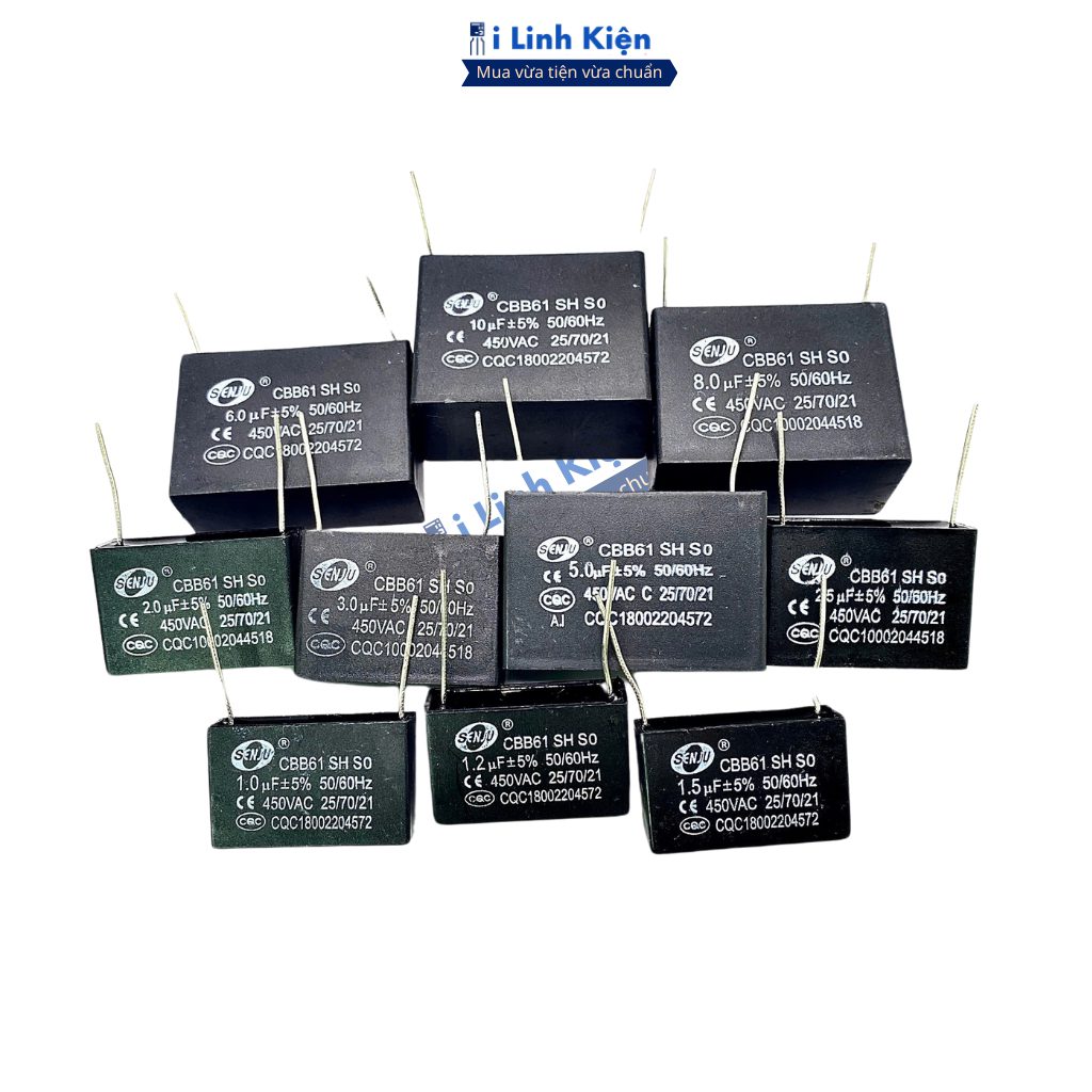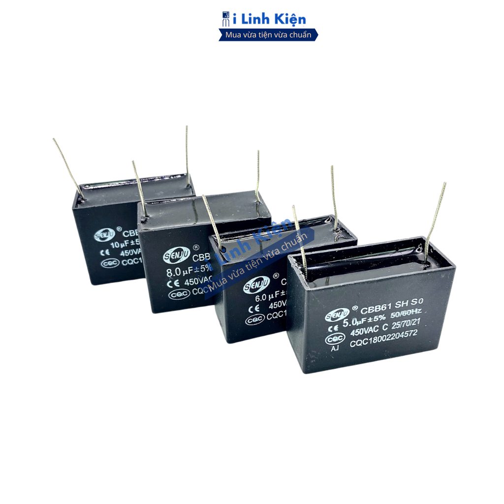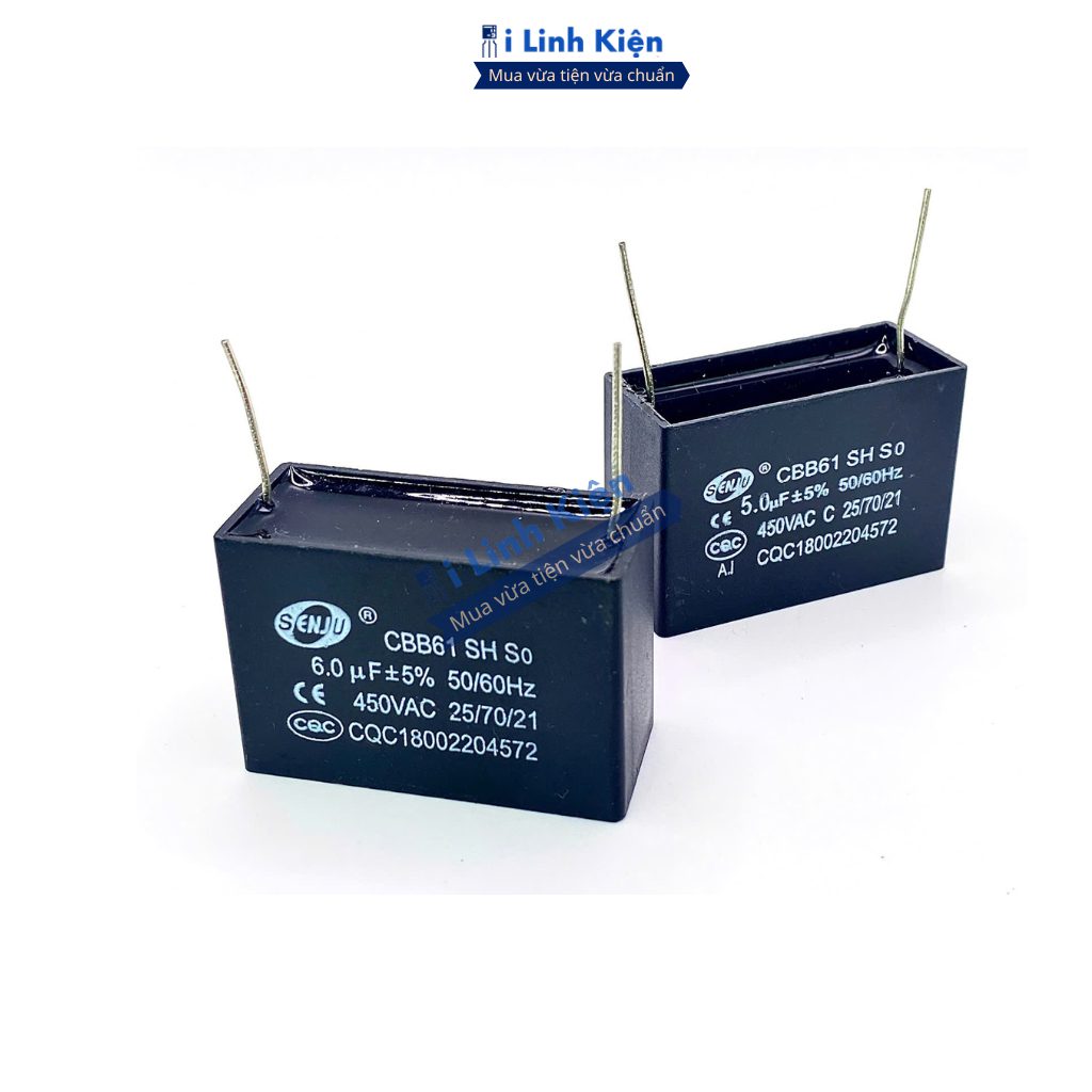 Tụ quạt 1uF 1.5uF 2uF 3uF 4uF 5uF 6uF 8uF 10uF 12uF 450VAC chân hàn mạch PCB CBB61