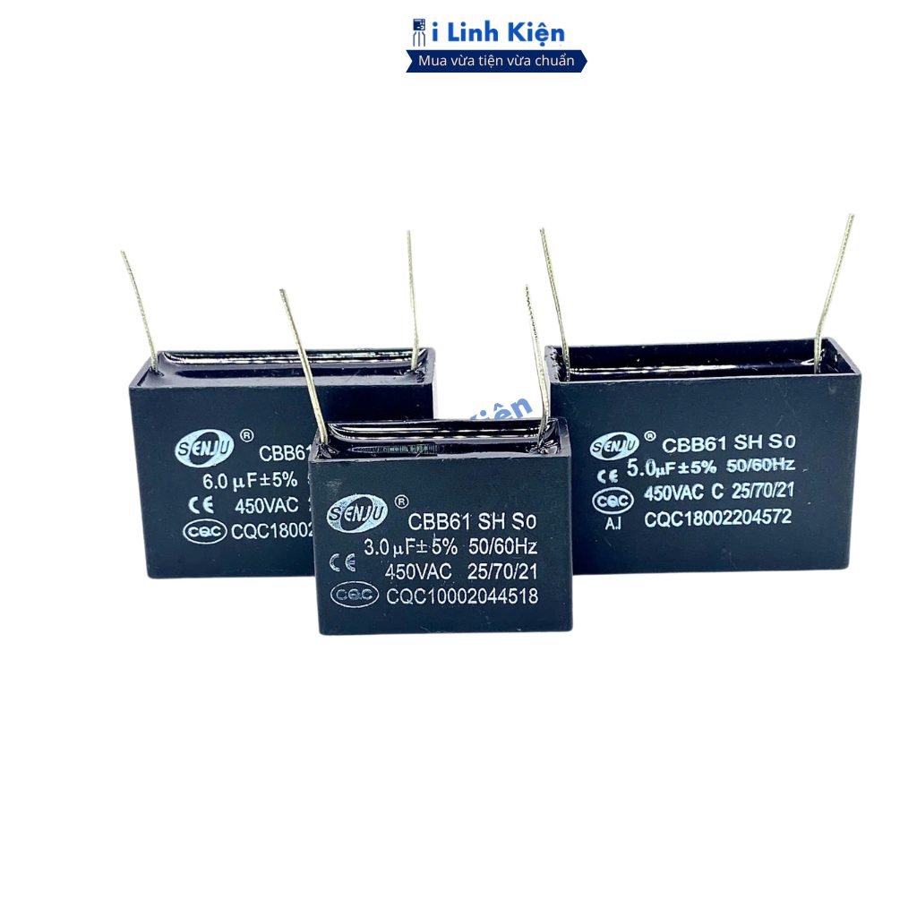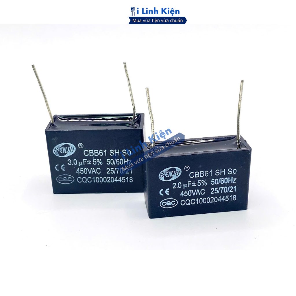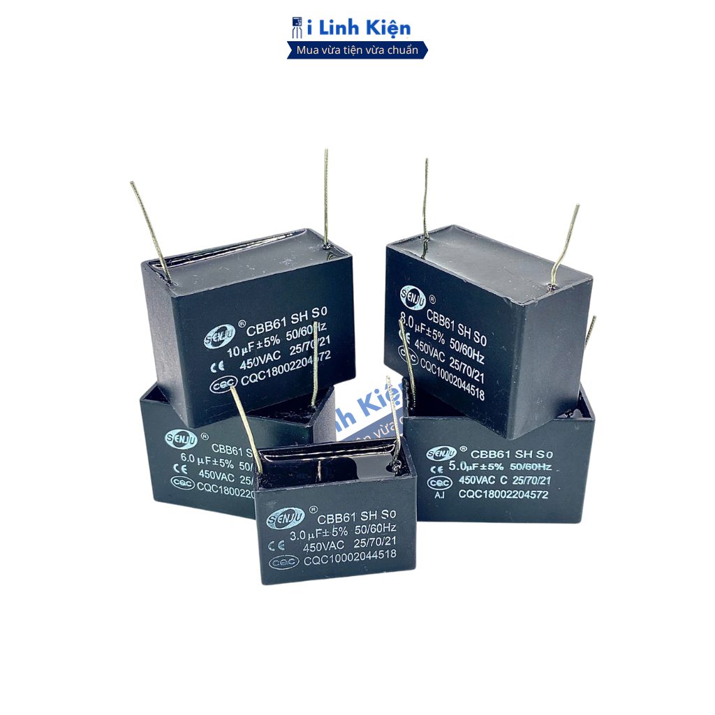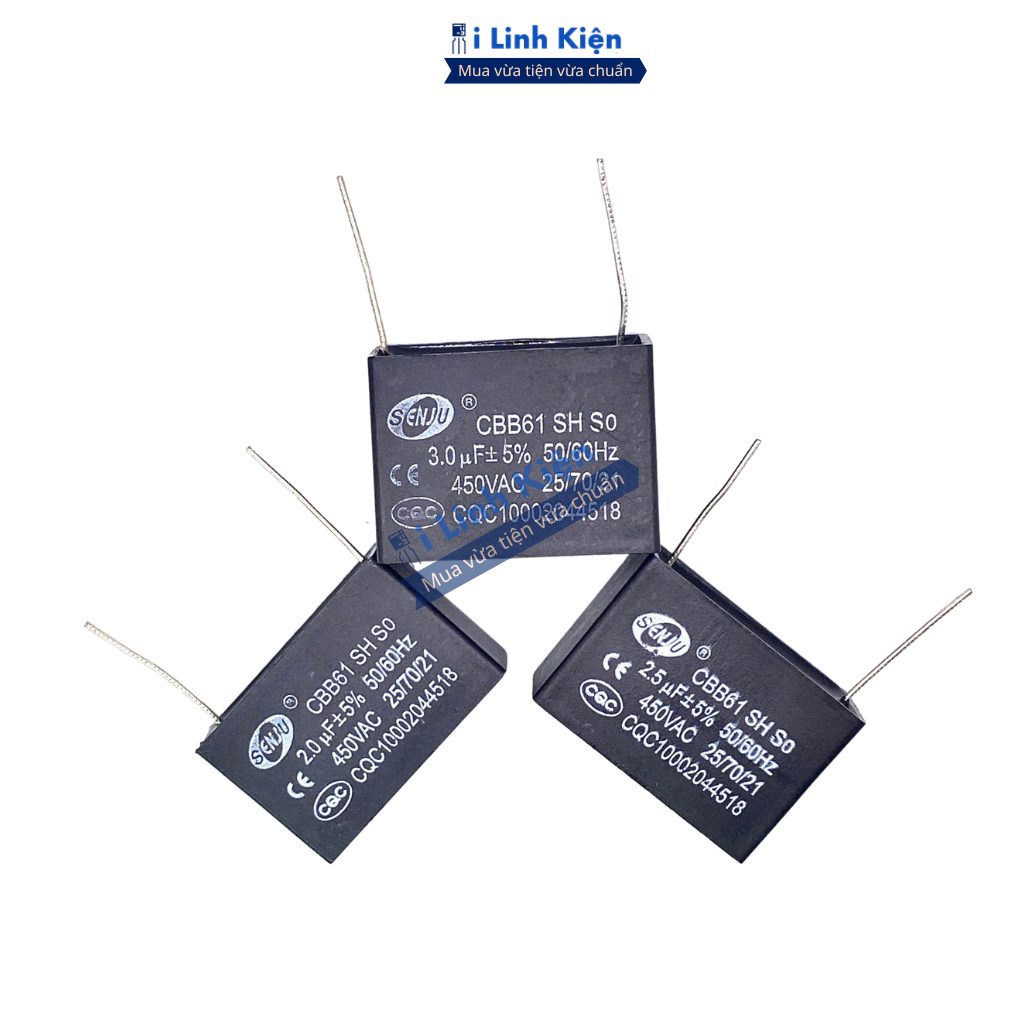 Tụ quạt 1uF 1.5uF 2uF 3uF 4uF 5uF 6uF 8uF 10uF 12uF 450VAC chân hàn mạch PCB CBB61