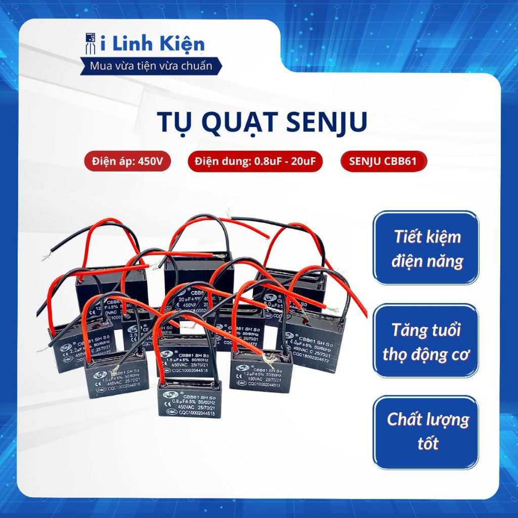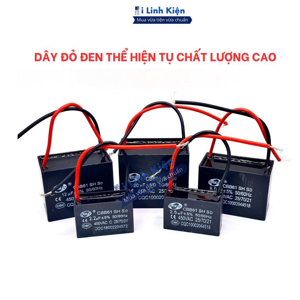 Tụ quạt 1uF 1.5uF 2uF 2.5uF 3uF 4uF 5uF 450V CBB61 JCON SENJU chính hãng.