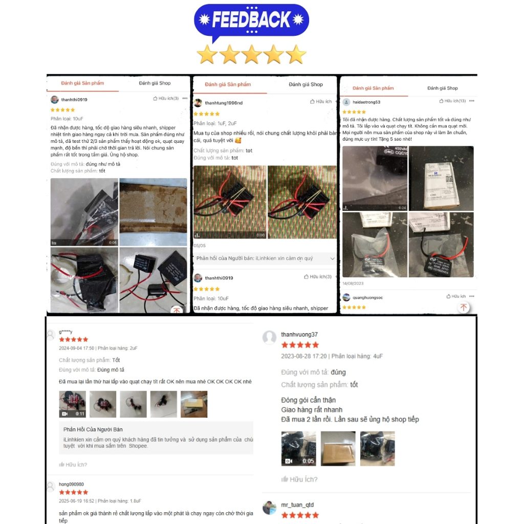 ILinhkien với phương châm “Tất cả vì khách hàng” nên shop luôn không ngừng đổi mới từng ngày để đem lại trải nghiệm tuyệt vời cho khách hàng khi mua sắm tại shop. Những vấn đề đơn hàng shop luôn xử lý nhanh nhất để làm sao sản phẩm tới tay người mua một cách nhanh chóng vì iLinhkien hiểu rằng, Khách hàng luôn muốn một sản phẩm tốt và giao nhanh khi mua sắm trên sàn thương mai điện tử. Khi nhận được đơn hàng shop rất mong được đánh giá 5 sao từ người mua vì đó là động lực để shop phục vụ khách hàng tốt hơn nữa. Trong trường hợp quý khách hàng không hài lòng về vấn đề gì đừng vội đánh giá 1 sao mà hãy liên hệ với shop để phản ánh.